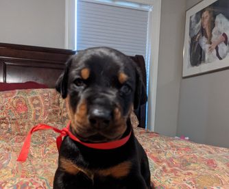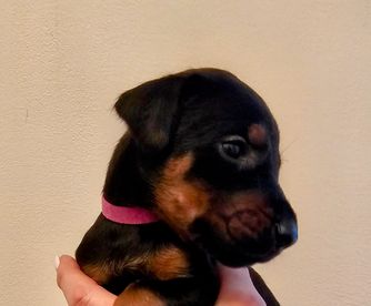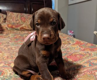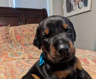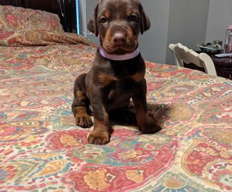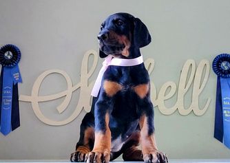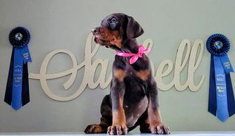 I'm Kathy S., the breeder behind Saxbell Dobermans located in Biglerville, PA. I produce top-quality pups that will continue to excel in their chosen field, whether that be showing, or as an active companion. My puppies are structurally sound, healthy, intuitive, and have wonderful temperaments. I raise all of my dogs with love in my home. I have high expectations for my puppies and make sure to place each one with an enriching and loving family that will match their temperament and personality.