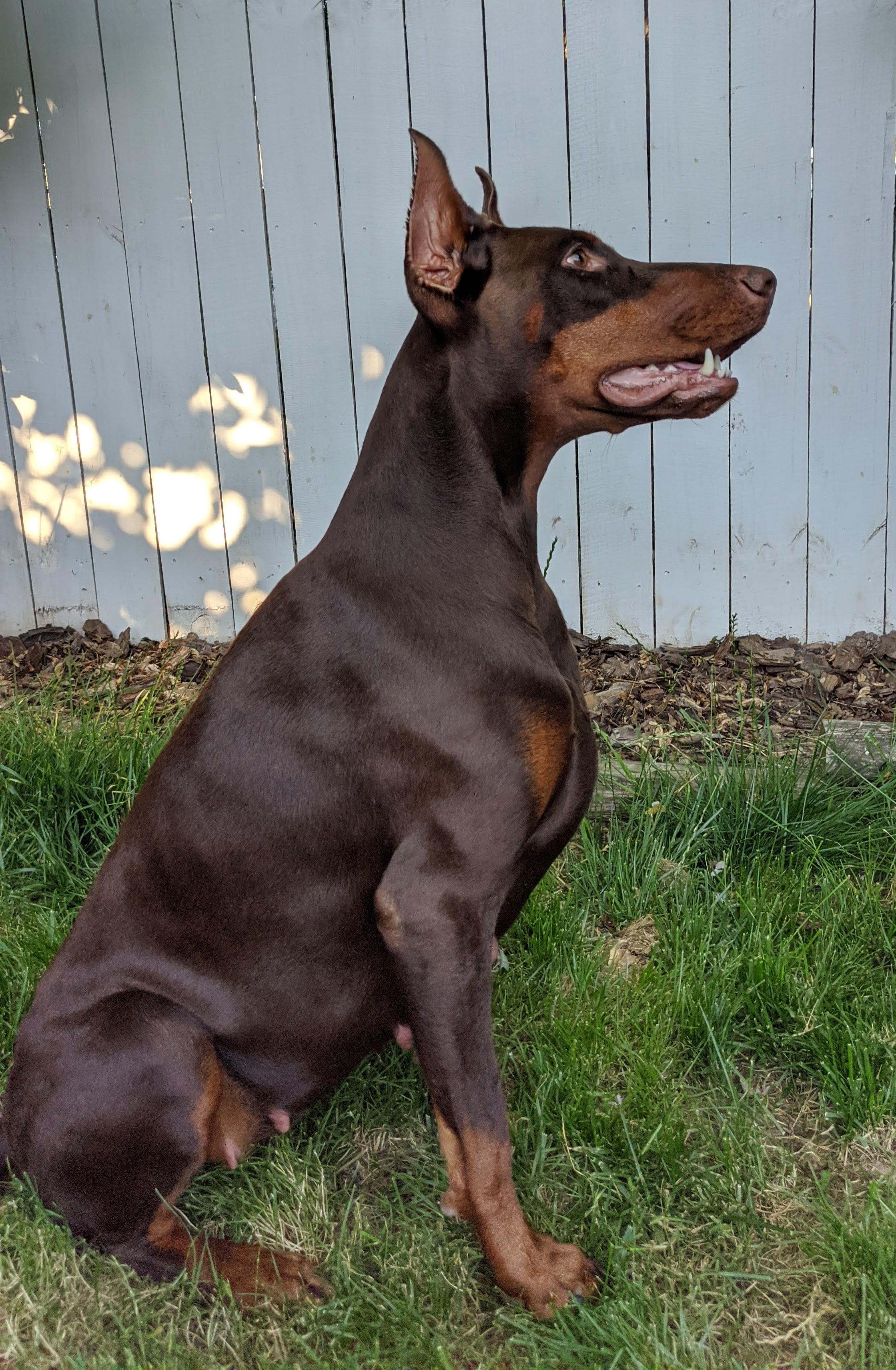 Dexter is a male Doberman Pinscher. Carefully selected as a great representative of his breed, Kathy decided to make him part of their program. Kathy has passed Good Dog’s screening process, which involved a review of their breeding practices, environment, and the mental and physical health of their dogs.