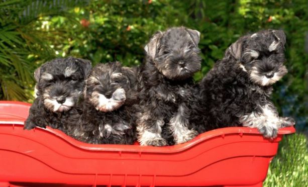 Our puppies include salt and pepper and black and silver. Colors will vary depending on the parent dogs.