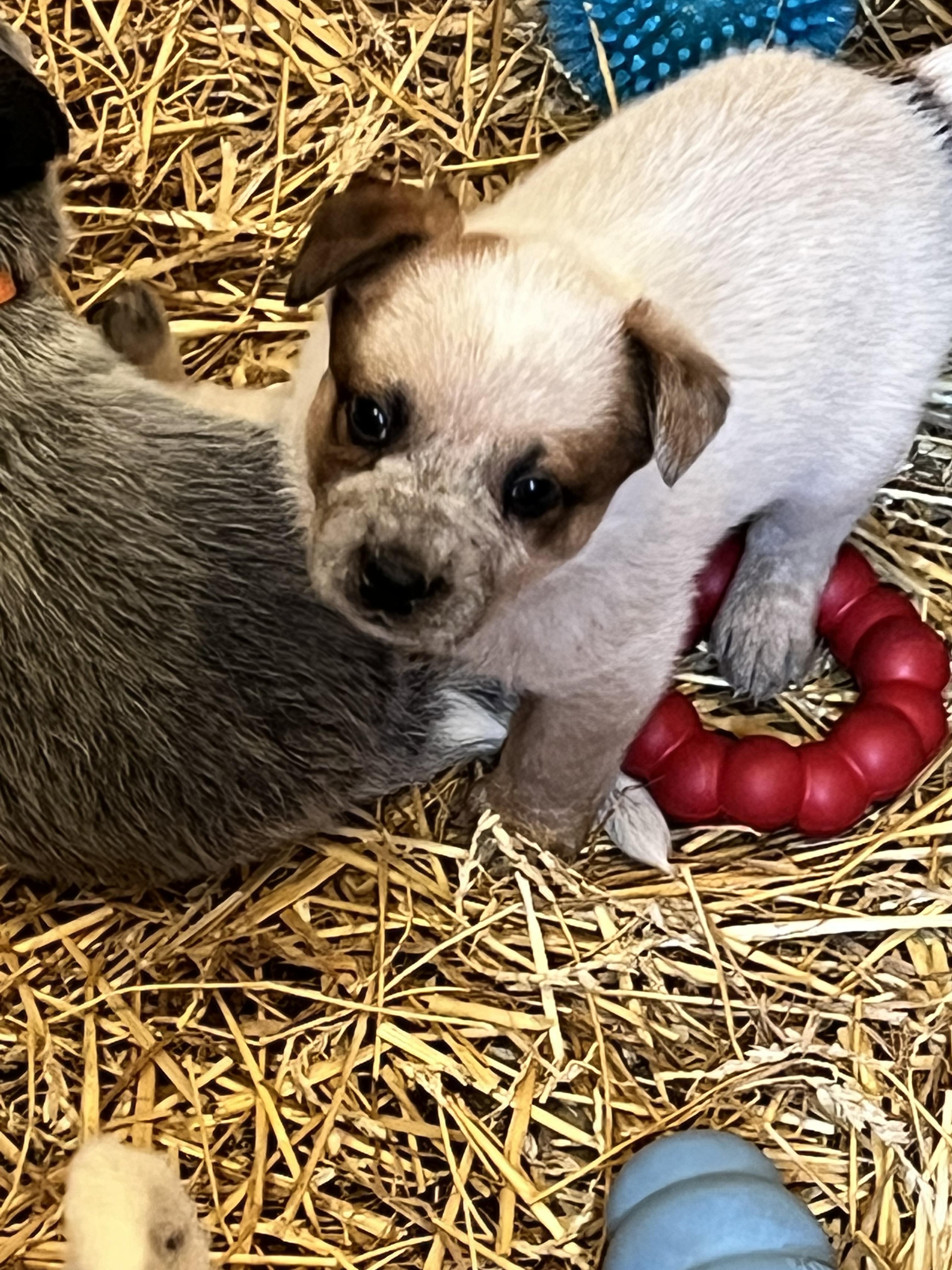 “The price includes first vaccine, de-worming, microchip, return policy, and health guarantee. All puppies are the same price. The non-refundable deposit is also applied if the health guarantee with appropriate vet documentation is utilized or you return your puppy for any reason. Unfortunately due to rising vet, dog food and gas costs, we were forced to increase the price of our beautiful puppies from $600 to $850 beginning with Red/Patches 2025 litter. SB Heelers apologies for this change as we struggle to keep the cost of our puppies down to help families like our family be able to afford a quality cattle dog with a beautifully balanced temperament and the herd drive we love.”
