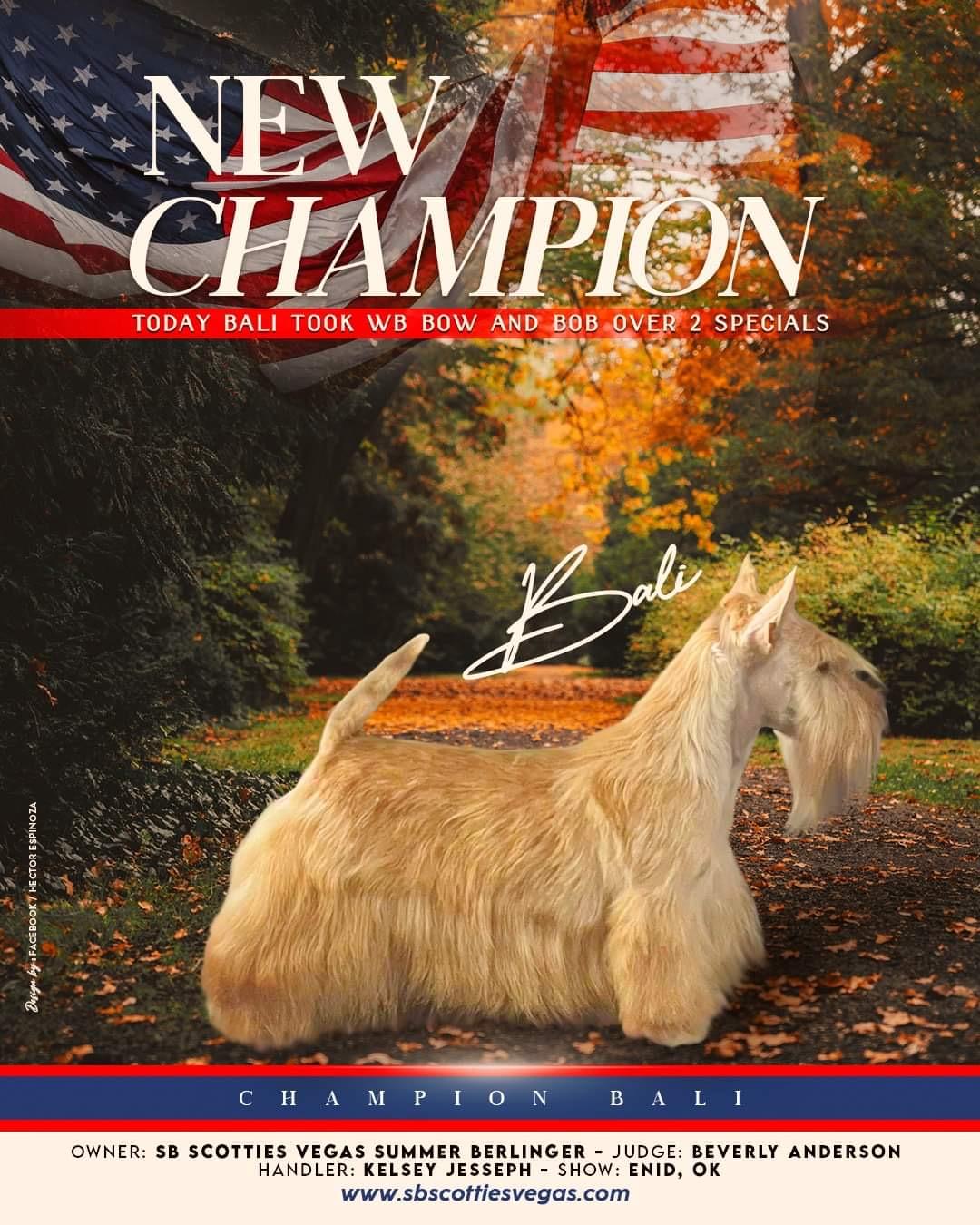 I'm SB SCOTTIES V., the breeder behind SB Scotties Vegas located in Las Vegas, NV. We start with healthy pups that have been tested and cleared for many genetics & then bred to improve the standard. Our dogs are bred with health, temperament, & a focus on distinction conformation show & improving & Preserving the breed them what doesn’t make the show cut is available for pet home.