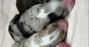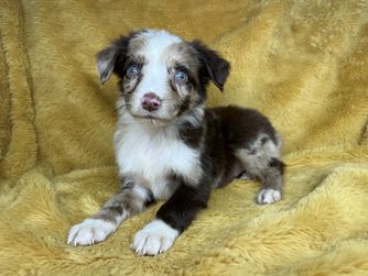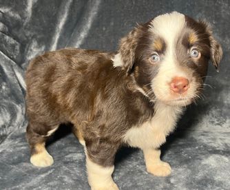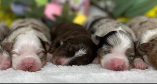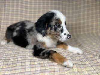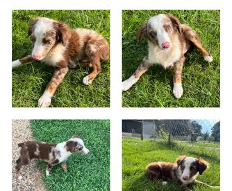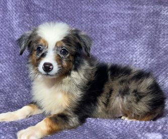 Miniature Australian Shepherd puppies include blue merle, red merle, red, and black. Toy Australian Shepherd puppies include black, red, blue merle, and red merle. Colors will vary depending on the parent dogs.