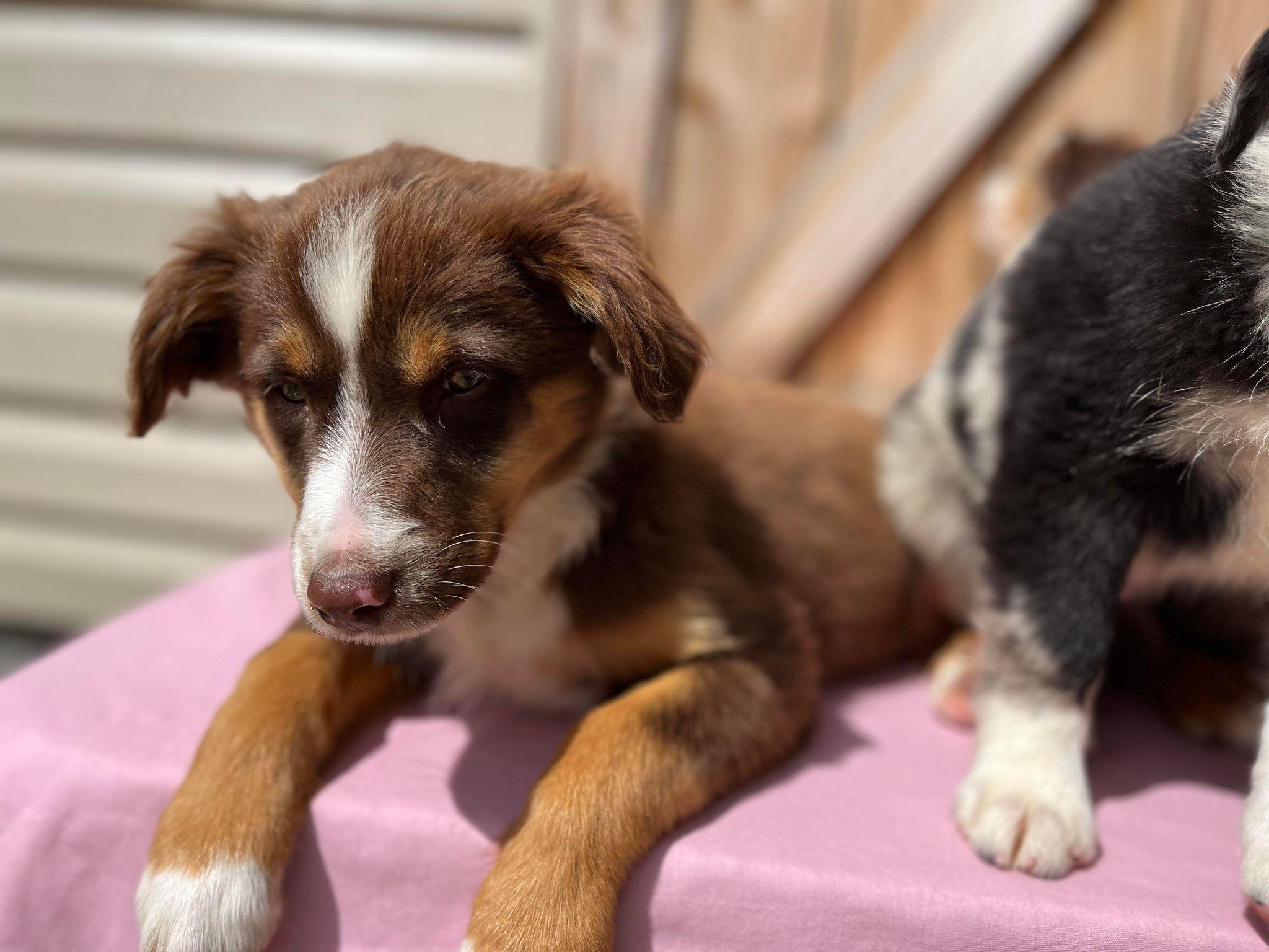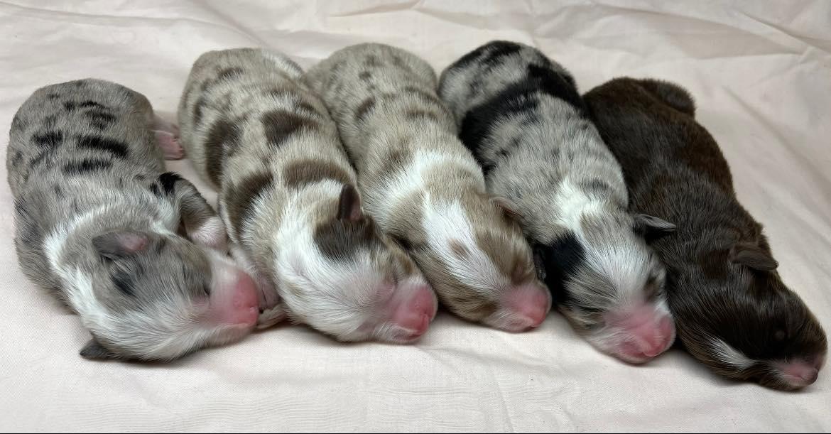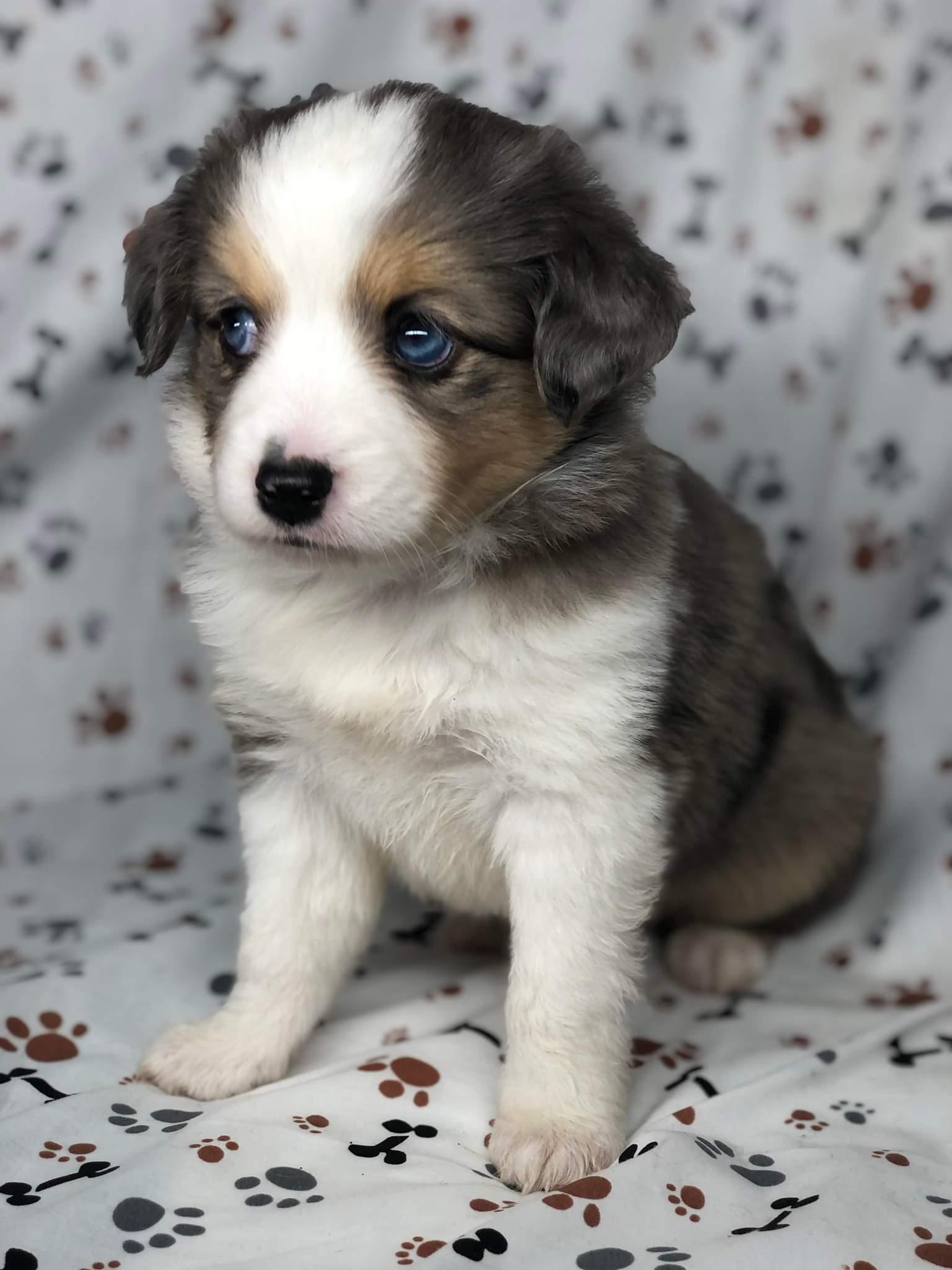 Our Miniature Australian Shepherd puppies include blue merle, red merle, red, and black. Toy Australian Shepherd puppies include black, red, blue merle, and red merle. Colors will vary depending on the parent dogs.