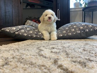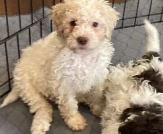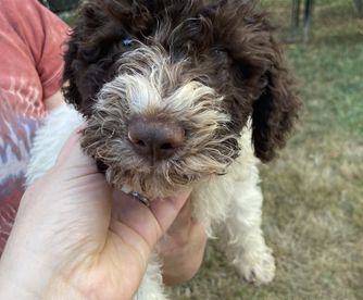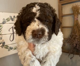 I'm Jessica H., the breeder behind Scarlet Oak Lagotti located in Chehalis, WA. In order to start our puppies off on the right paw, we begin socializing at a young age so they are set up for success in their new homes. We prioritize the health and well-being of each one of our puppies and follow all appropriate puppy health protocols.
