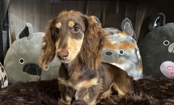 Our French Bulldog puppies include brindle, cream, fawn, and fawn and white. Dachshund puppies include cream, chocolate and cream, and dapple. Colors will vary depending on the parent dogs.