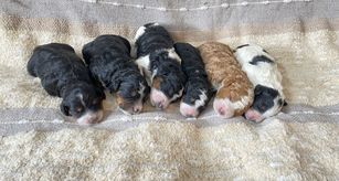 I'm Rebekah S., the breeder behind Scarlett Doodles located in Milliken, CO. We have a litter of family raised mini F1b Bernedoodles! Parents are health tested, and puppies are raised with love!