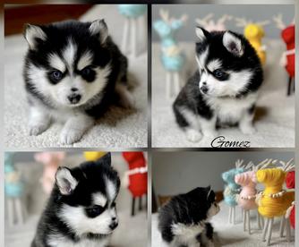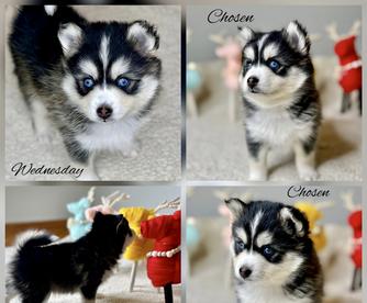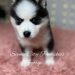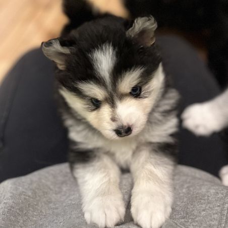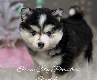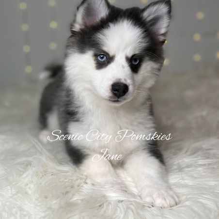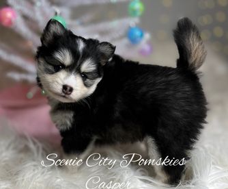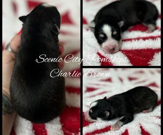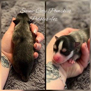 We have looked for a reputable breeder for Pomskies for a long time. It was so nice to be involved with Scenic City and they sent updates all the way to pickup day. We ended up getting 2 they were so precious. By far, my favorite dogs I have ever had. They have such different personalities and I love that. We even kept their original Halloween themed names we were so used to calling them that. Mr. Gomez Addams and Bella from the Twilight litter. They love to play and run, and are super smart. They love to hunt as well. Bella got the mole that was terrorizing our yard for years. That was an unexpected prize to find by the door. We get so many smiles and attention everywhere we go. I love them so much we talked about getting a third to add to the family.