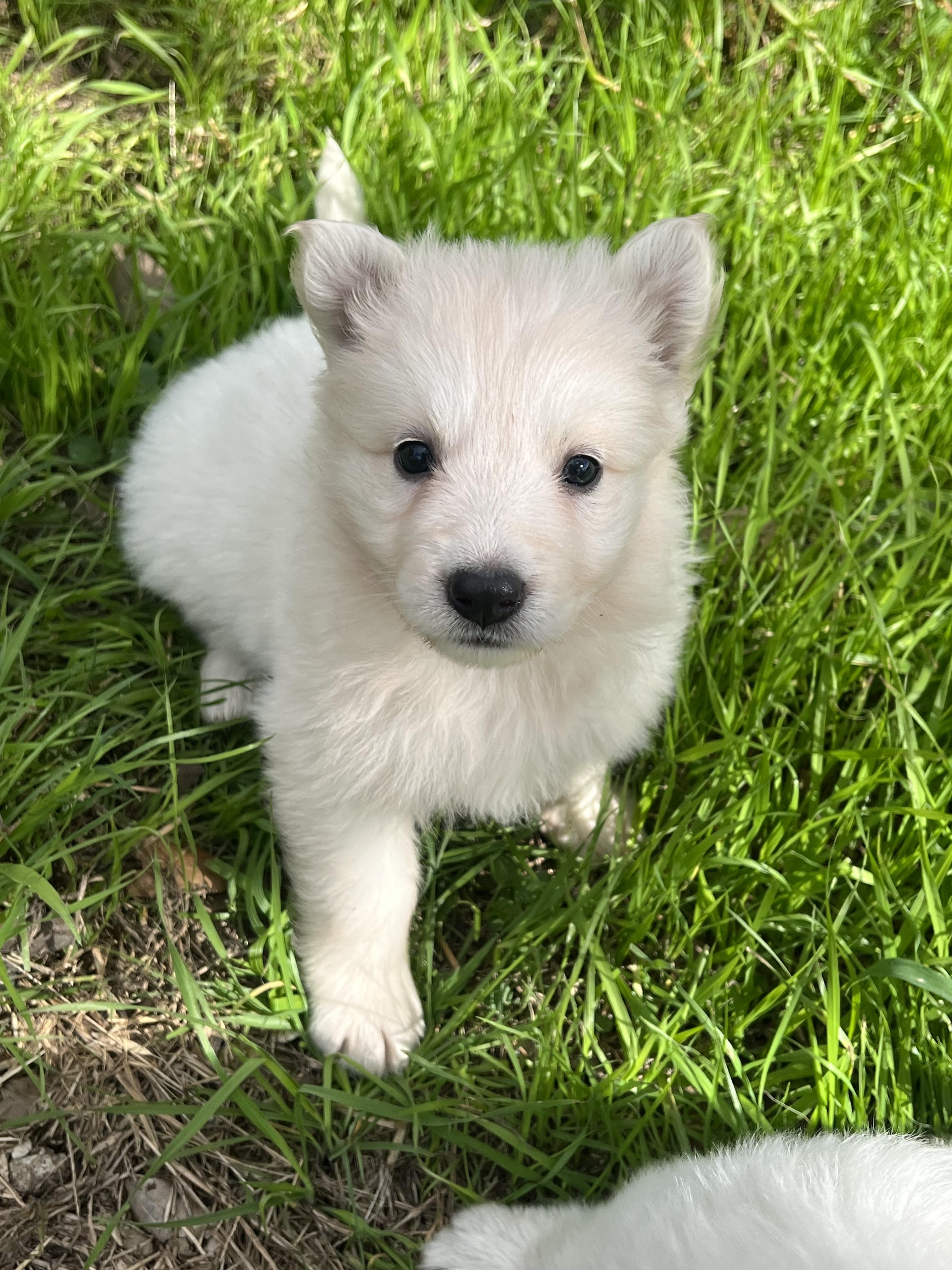 Our German Shepherd puppies are white. Berger Blanc Suisse puppies are white. Colors will vary depending on the parent dogs.