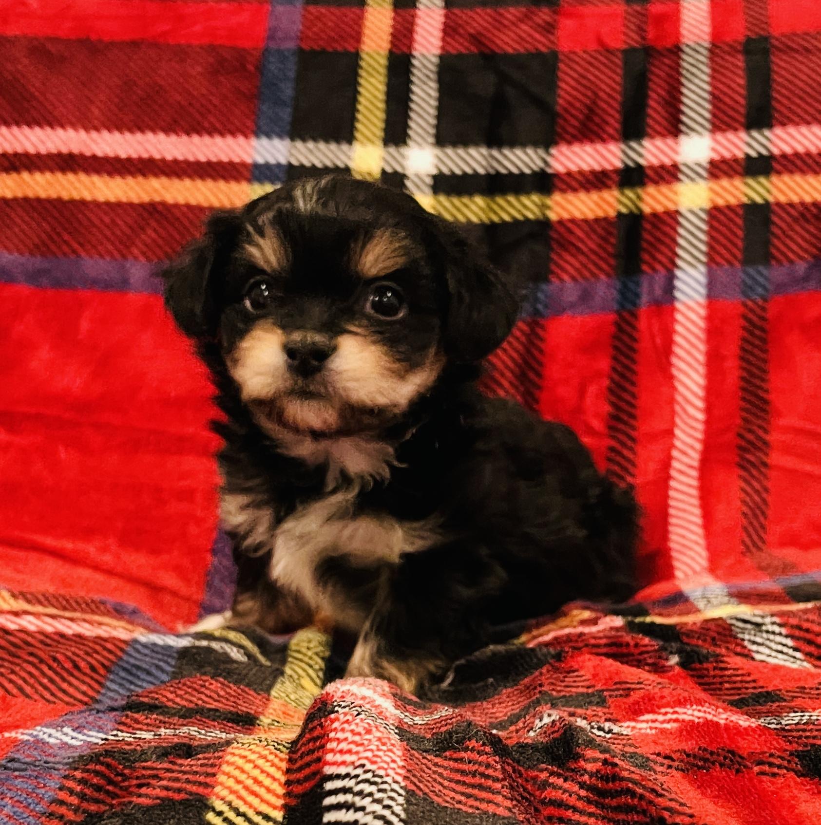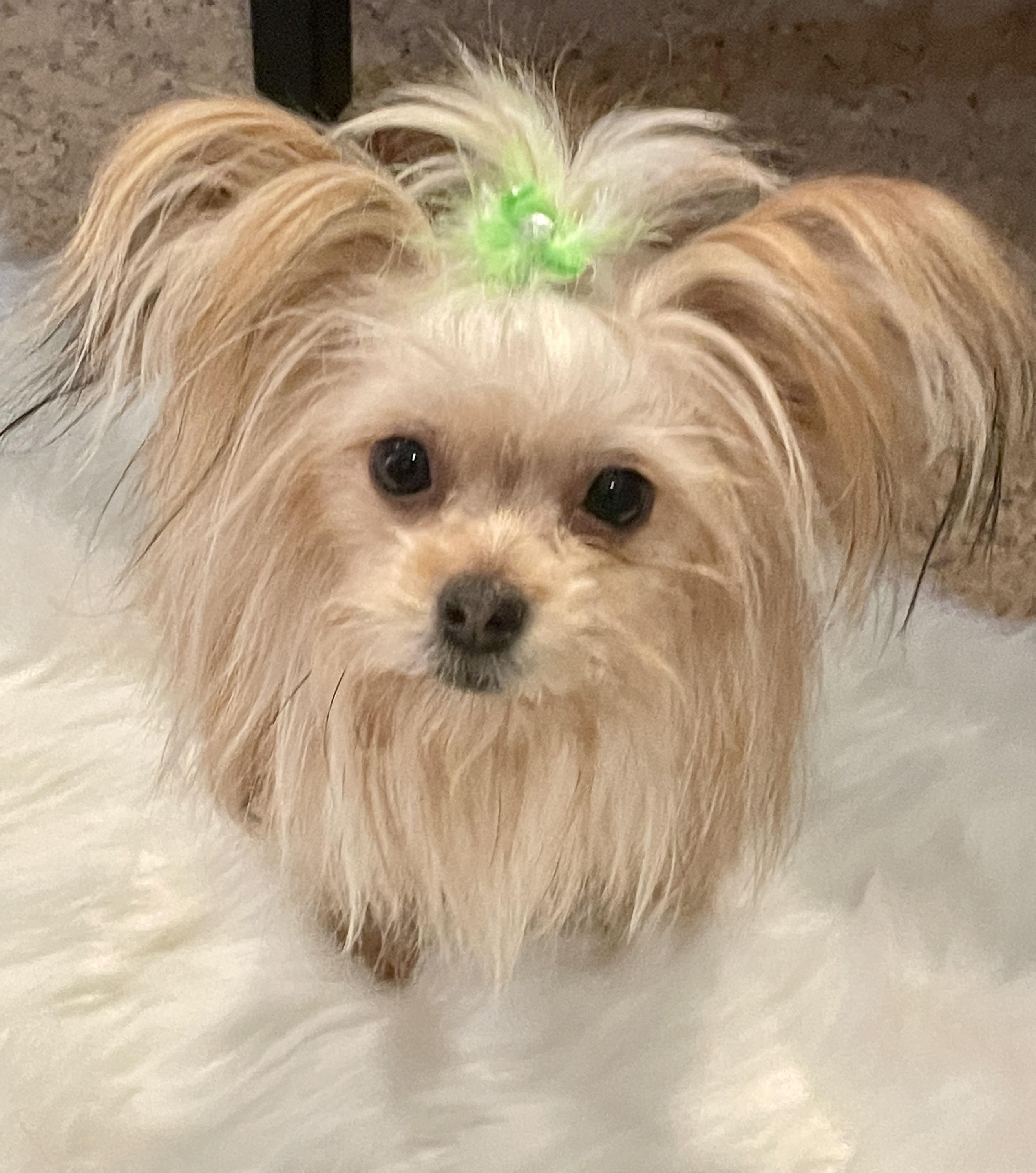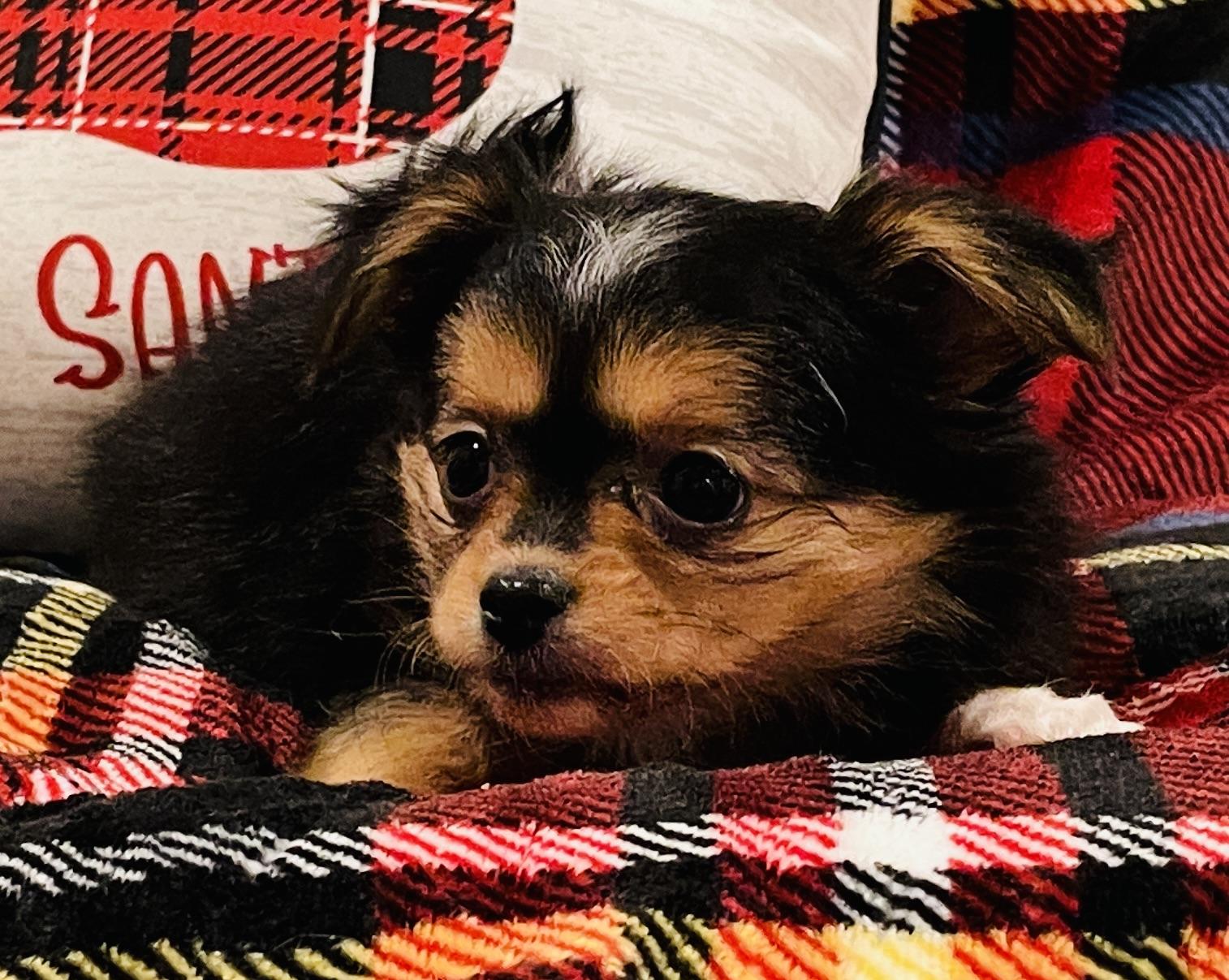 Dresden is a beautiful tri-color (black/white/brown) Mi-Ki. She is a sweet girl with a tomboy edge. She also carries Blue. Dresden’s normal weight is 4.5 pounds.