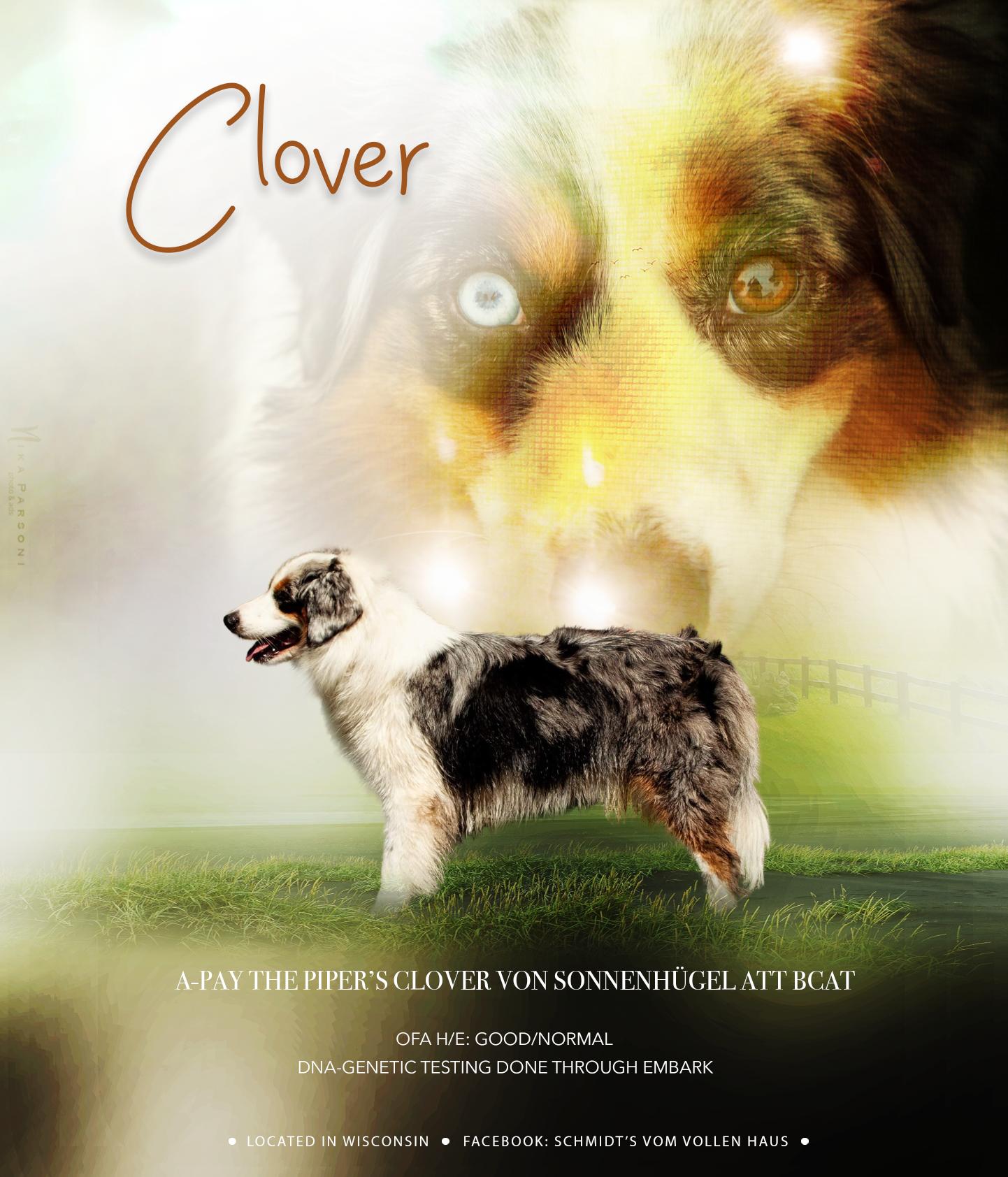 Clover is a female Miniature American Shepherd. Carefully selected as a great representative of her breed, Teri decided to make her part of their program. Teri has passed Good Dog’s screening process, which involved a review of their breeding practices, environment, and the mental and physical health of their dogs.