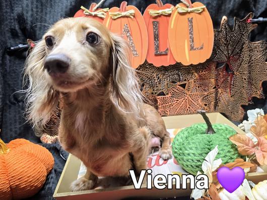 Vienna is a super smart Dachshund! Vienna can understand several words when you spell them.. She will also let out a bark.. send all the other dogs to the front door.. as she doubles back for a treat.. lol! Vienna is a very loving dog and she loves to please her family. She is super food oriented and well do anything for a treat!