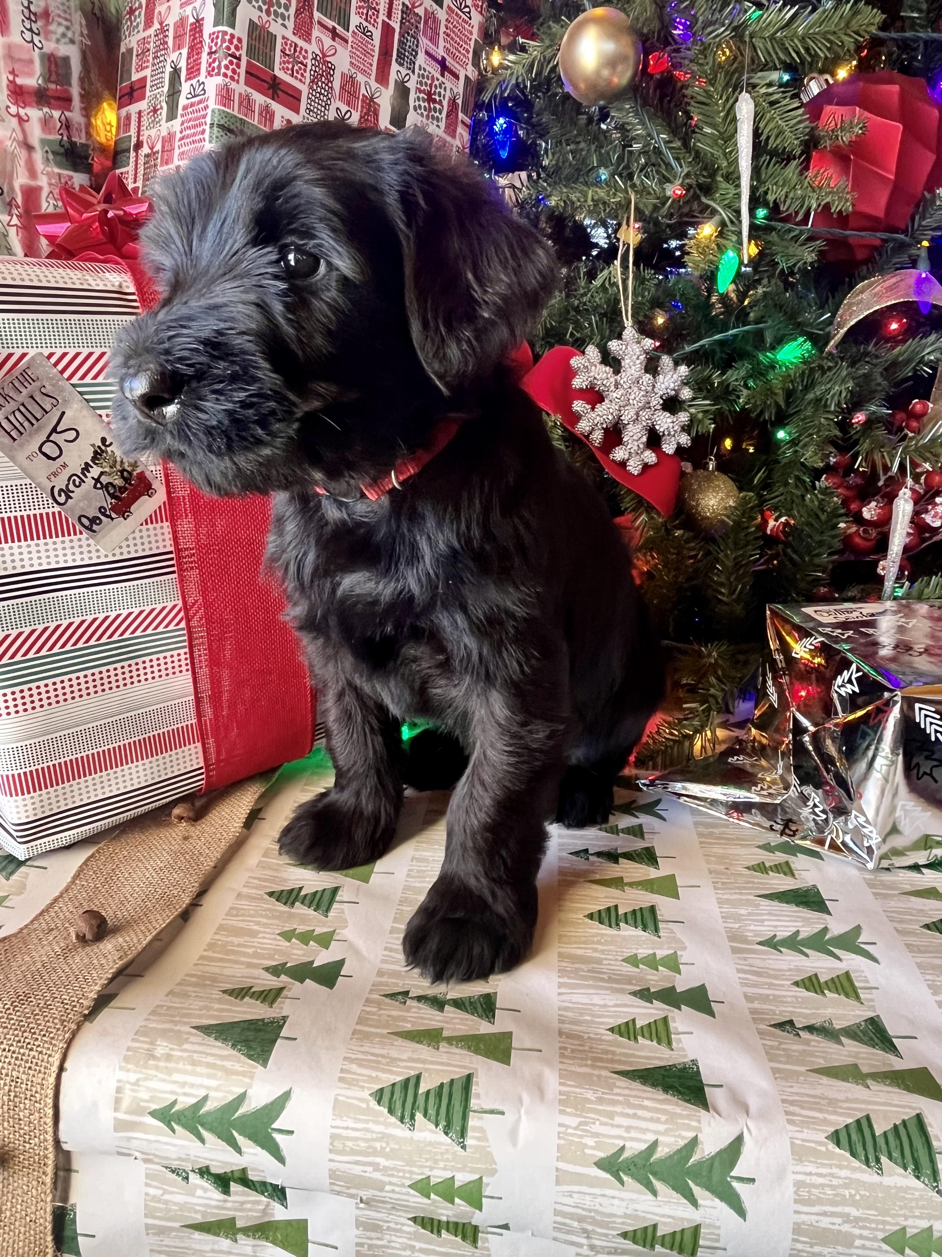 Our puppies include pepper and salt and black. Colors will vary depending on the parent dogs.