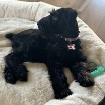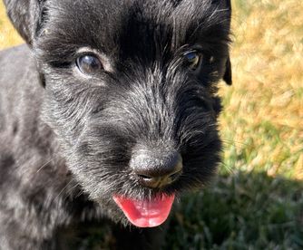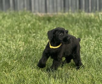 We got our giant schnauzer puppy 5 days ago from Joshua, we paid for the delivery option and that went as smoothly as it possibly could. Highly recommend if you’re states away. Our puppy is the most happiest, smartest and well adjusting puppies ever. It took some learning on my end and his, naturally. Thankfully, Joshua does an amazing job at starting the potty training process so that when you receive your puppy, they’re already somewhat acclimated. Our puppy is trained in that regard after only 5 days, as well as crate trained. It was a lot of trial and error with crate training at first but what worked in the end was getting a crate with a closed roof and putting a blanket over the side of the crate. They seem to enjoy darker places when it comes to calming down. All in all, 10 out of 10. Highly recommend. Specifically with Joshua at the Schnauzer Ranch. He’s the most knowledgeable, responsible and supportive breeder we’ve ever worked with. Thanks again, Joshua.