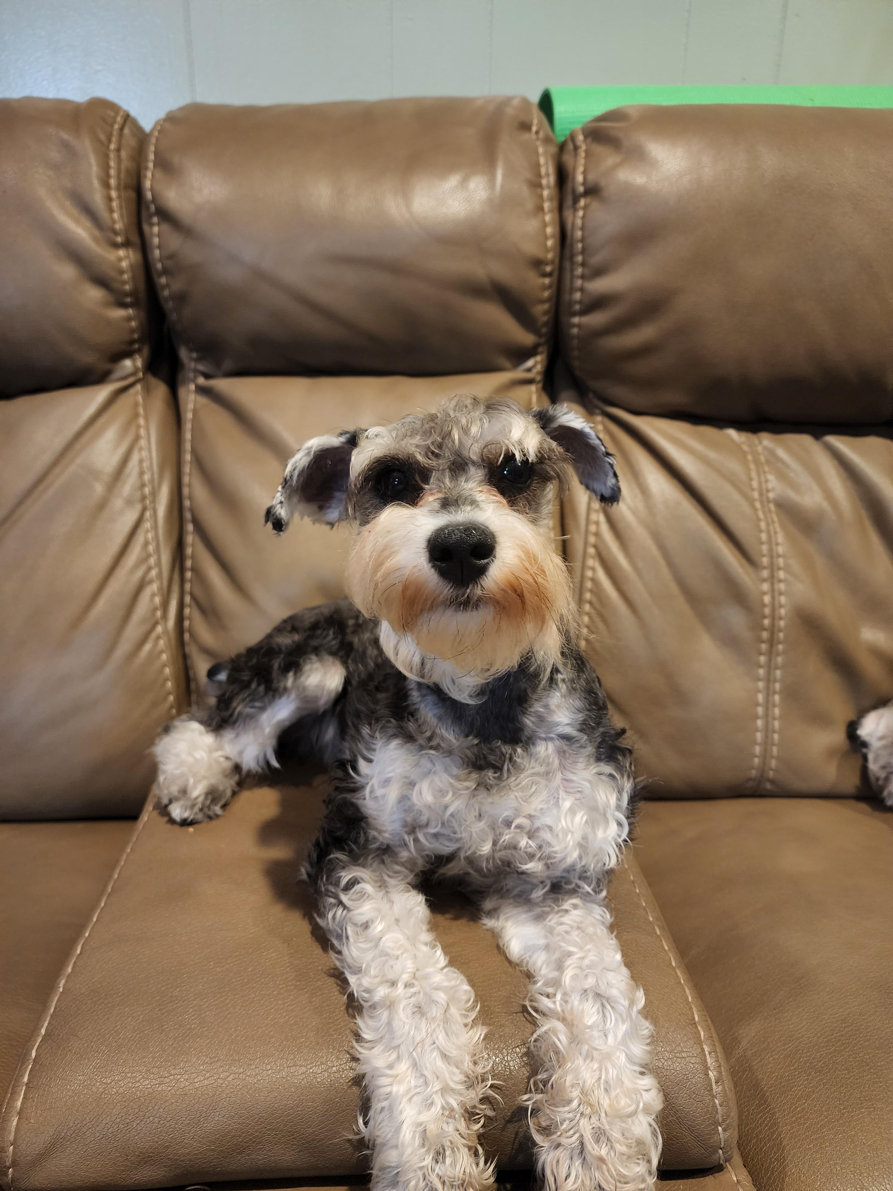 I got my boy from a local place in New York and fell in love with his amazing personality. He reignited my love for Miniature Schnauzers and kindled my passion to share the joy of living with one with others. We got our girl, Raisin, from Arkansas and have been spending countless hours doing research in preparation for becoming grandparents to our fur babies!