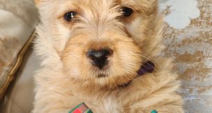Ted is our beautiful laid back wheaten male Scottish Terrier. super sweet traditional guy who loves to give love!