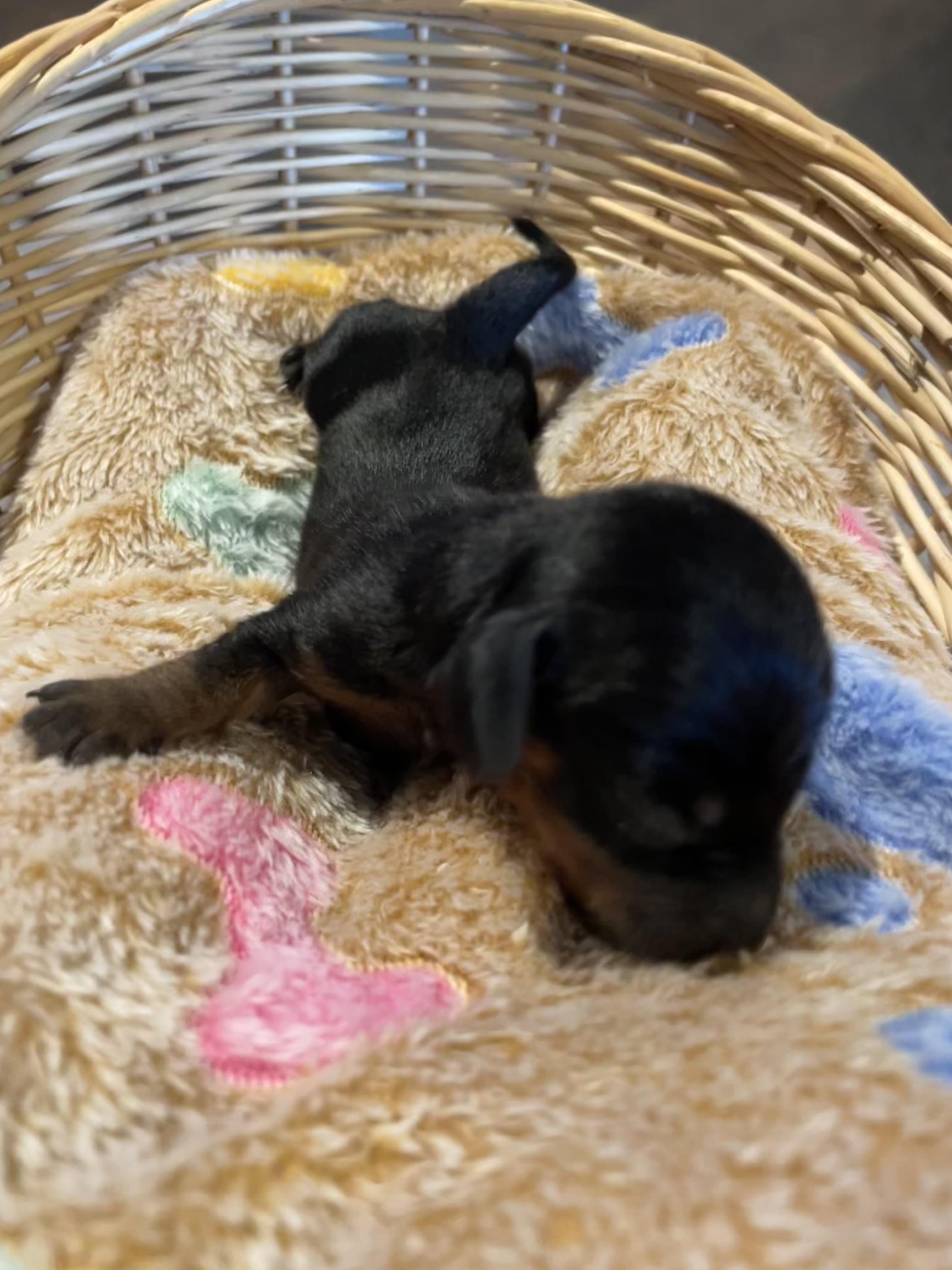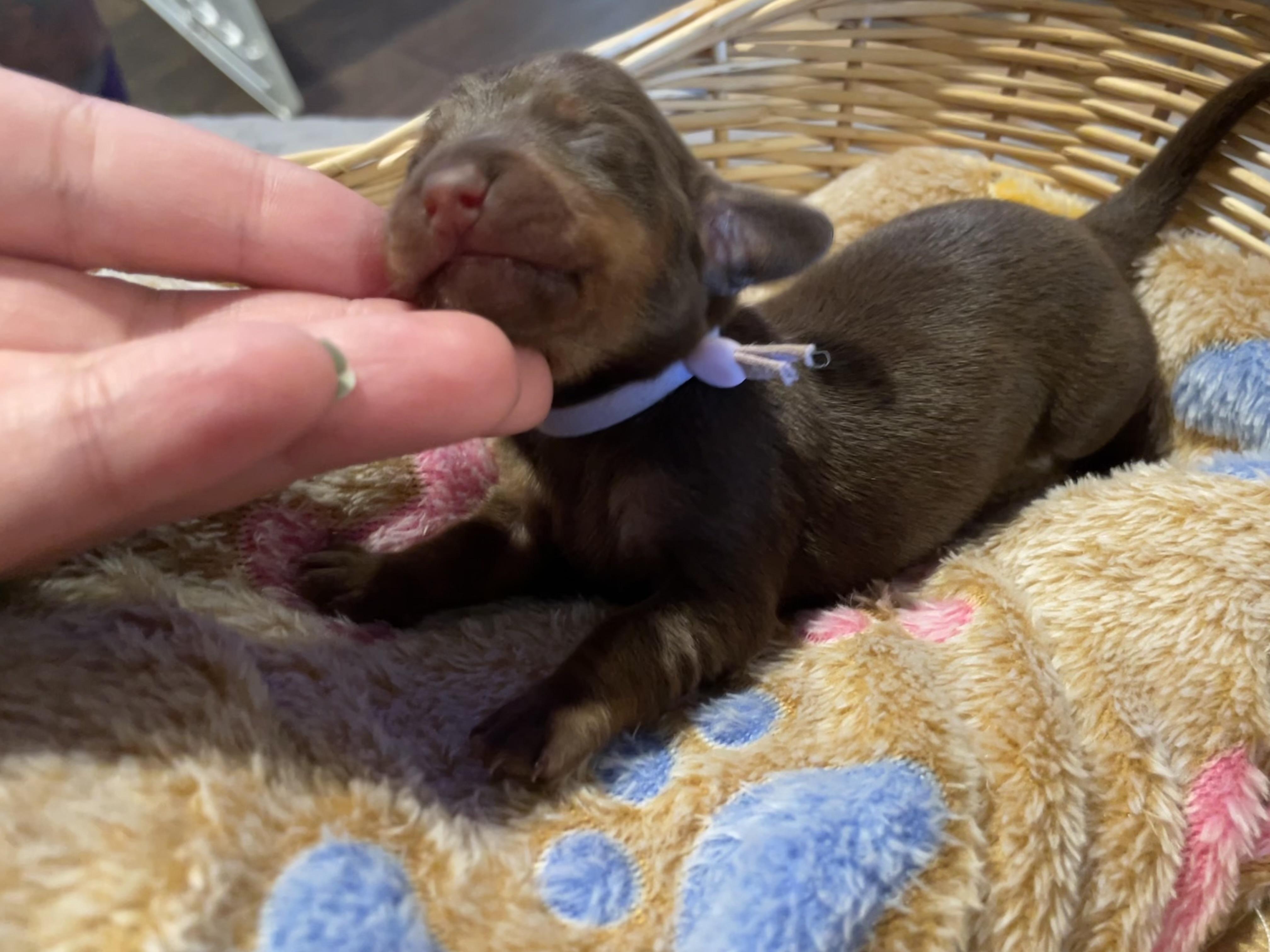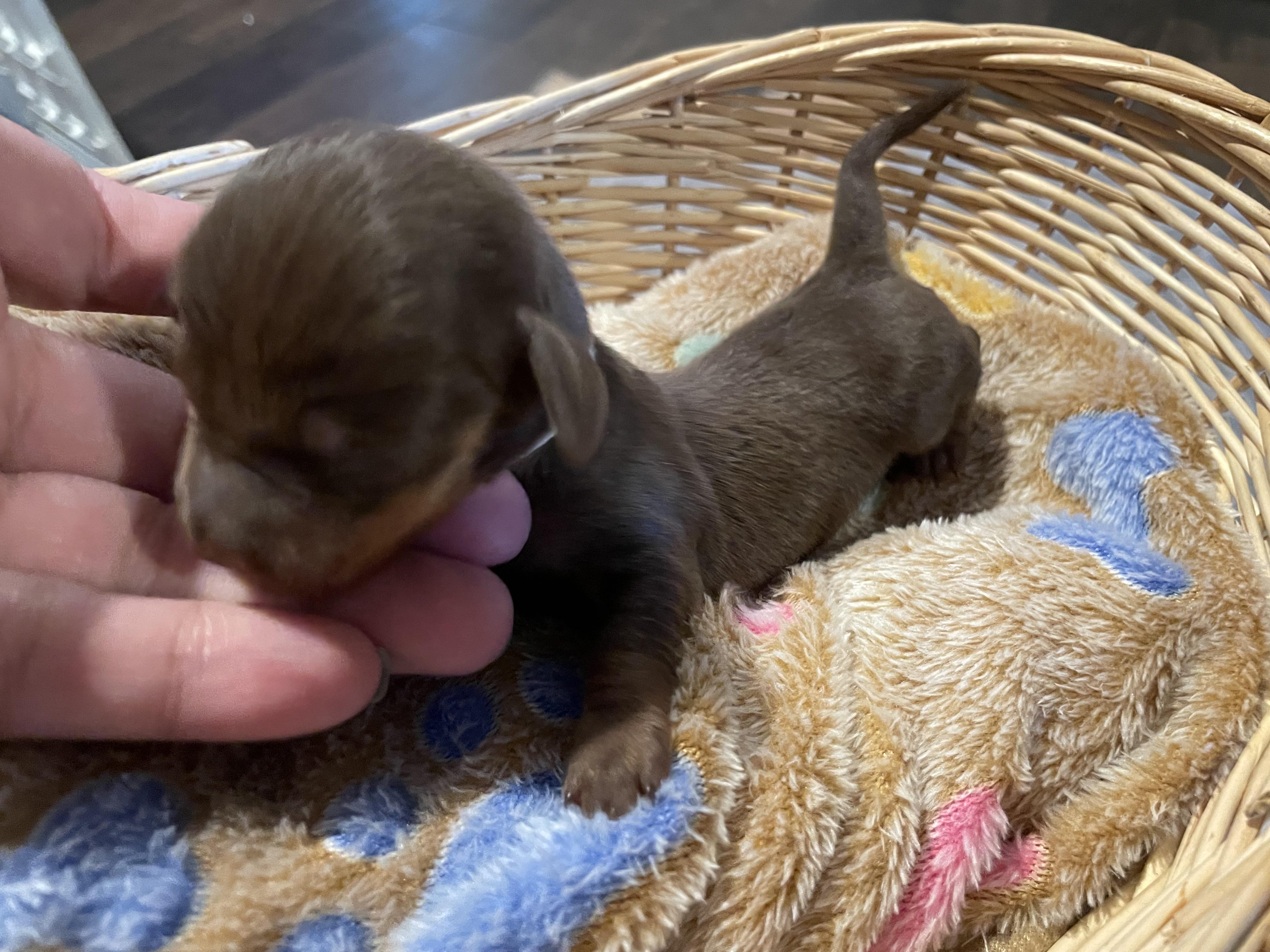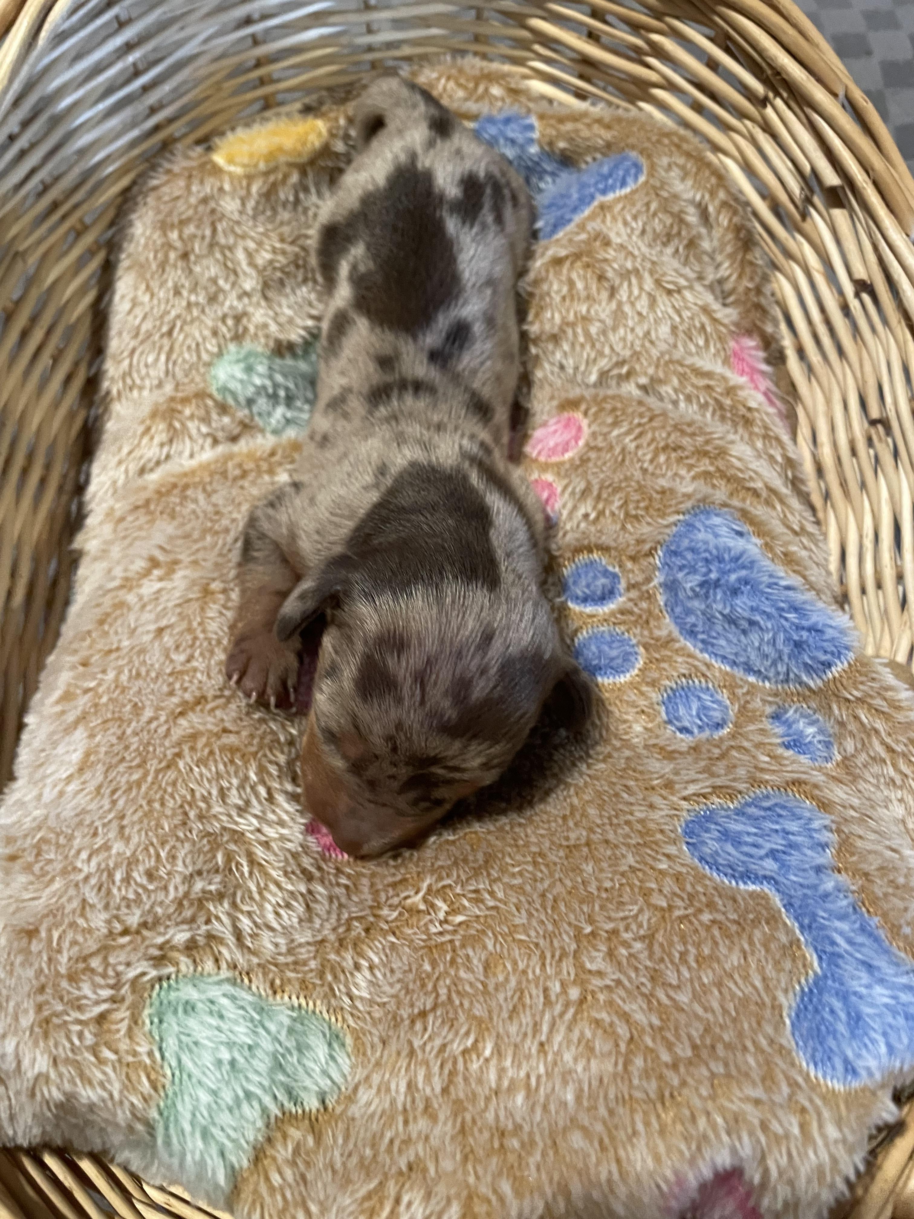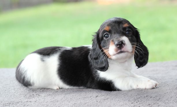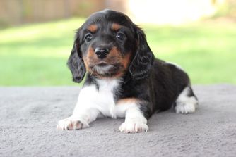 Our puppies include piebald, fawn (isabella) and tan, black and tan, chocolate and tan, and dapple. Colors will vary depending on the parent dogs.