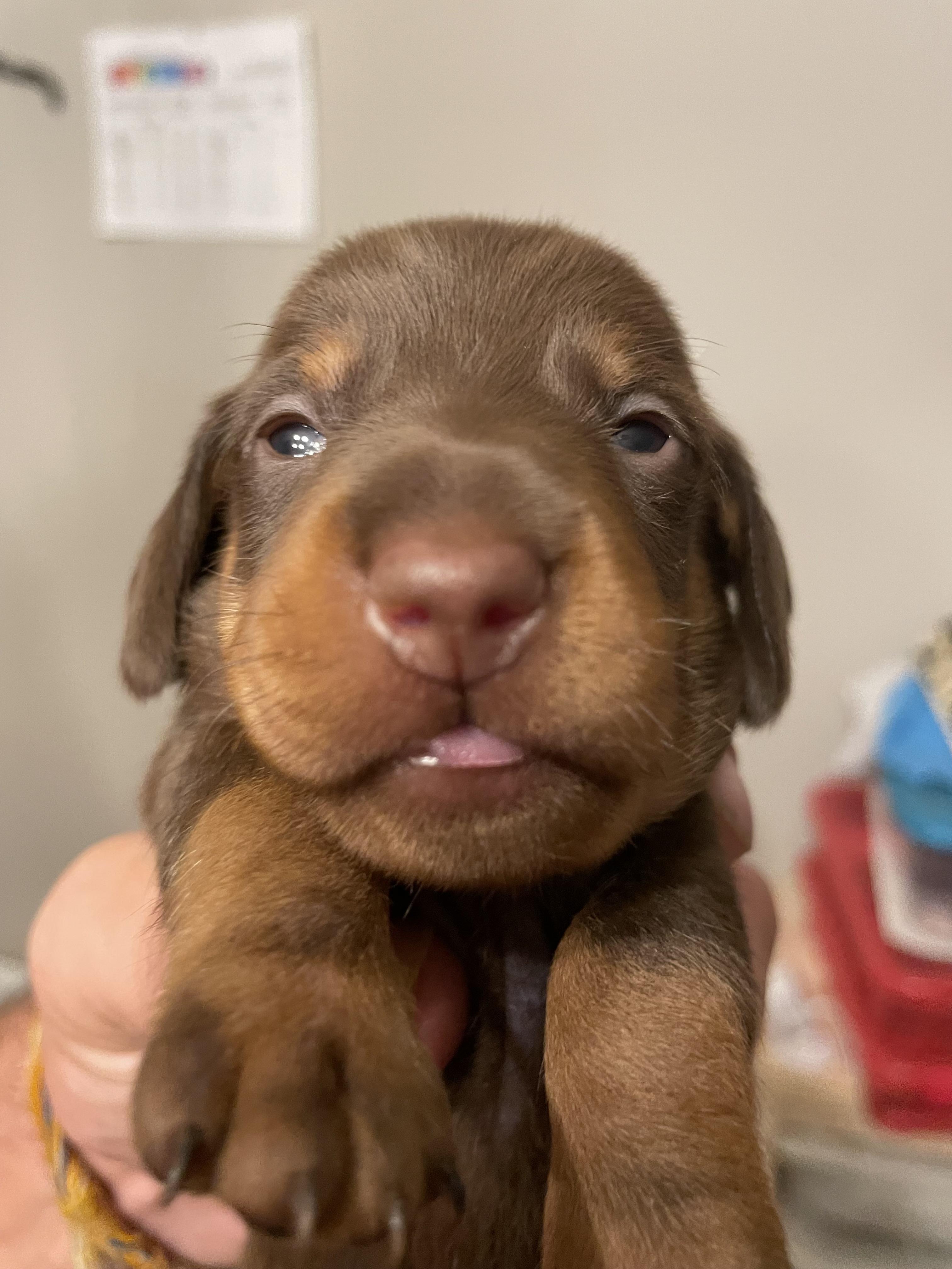 Kaiser is a male Dachshund. Carefully selected as a great representative of his breed, Kristi decided to make him part of their program. Kristi has passed Good Dog’s screening process, which involved a review of their breeding practices, environment, and the mental and physical health of their dogs.