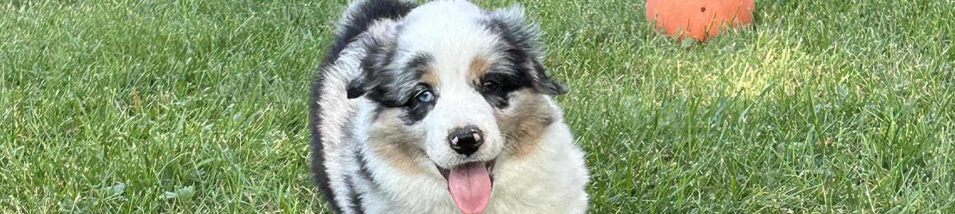 Our Australian Shepherd puppies include red merle, blue merle, black tri-color, and red tri-color. Miniature Australian Shepherd puppies include blue merle, black tri, red tri, and red merle. Colors will vary depending on the parent dogs.