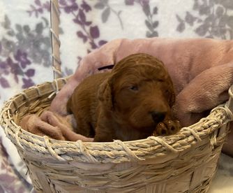 Our puppies are red. Colors will vary depending on the parent dogs.