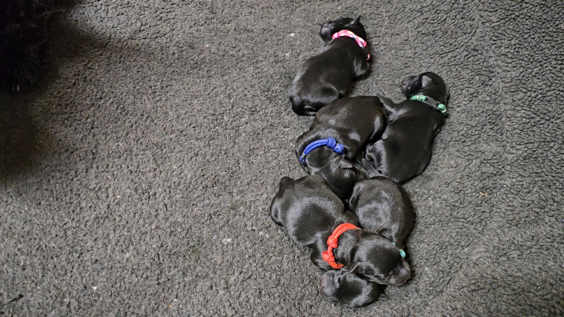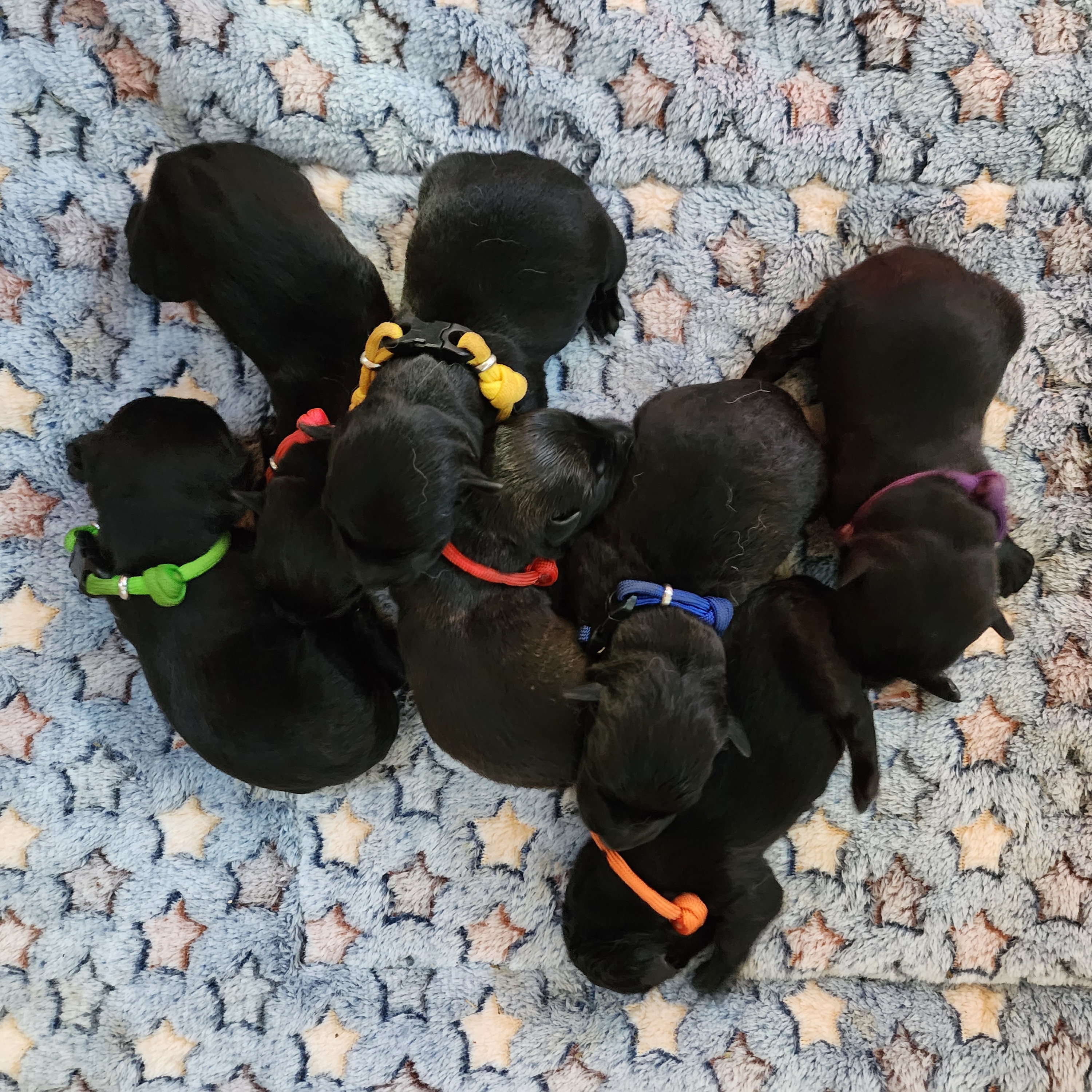 Our puppies include brindle, wheaten, and black. Colors will vary depending on the parent dogs.