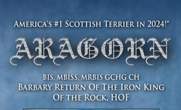 #1 Scottish terrier for 2024 in United States, 2024 Lloyd Award Winner, BIS, MRBIS, MBISS AND HOF WINNER.