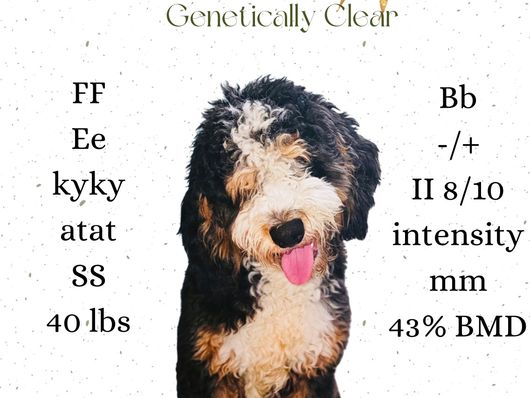 Trixie is a female Bernedoodle. Carefully selected as a great representative of her breed, Kellie decided to make her part of their program. Kellie has passed Good Dog’s screening process, which involved a review of their breeding practices, environment, and the mental and physical health of their dogs.
