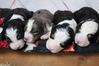 Our Bernedoodle puppies include mini and medium sizes. Poodle puppies include miniature and standard sizes. Sizes will vary depending on the parent dogs.
