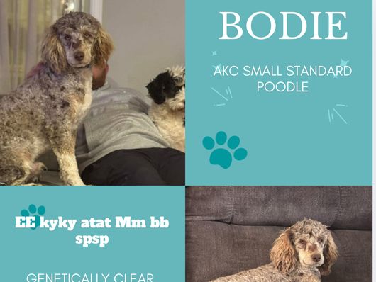 Bodie is a male Poodle. Carefully selected as a great representative of his breed, Kellie decided to make him part of their program. Kellie has passed Good Dog’s screening process, which involved a review of their breeding practices, environment, and the mental and physical health of their dogs.