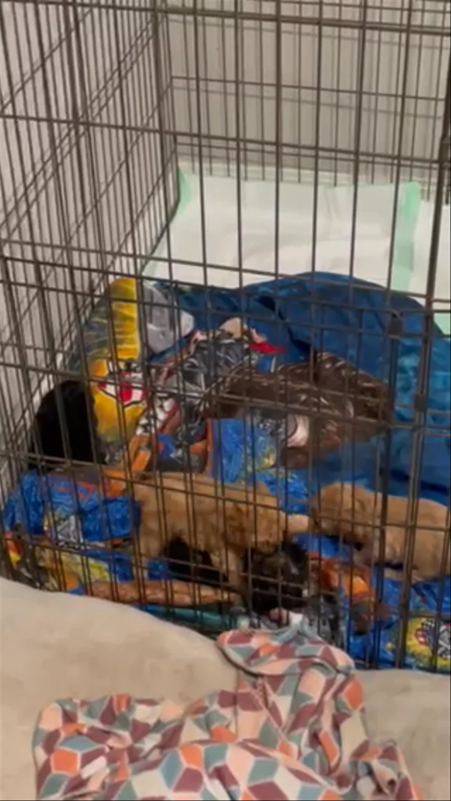 Puppies are getting their first exposure to the outside world while the sun is shining and temperatures are up. Also gives me a chance to do a deep clean and rearrange the pen. We also got them a few new toys to play with.