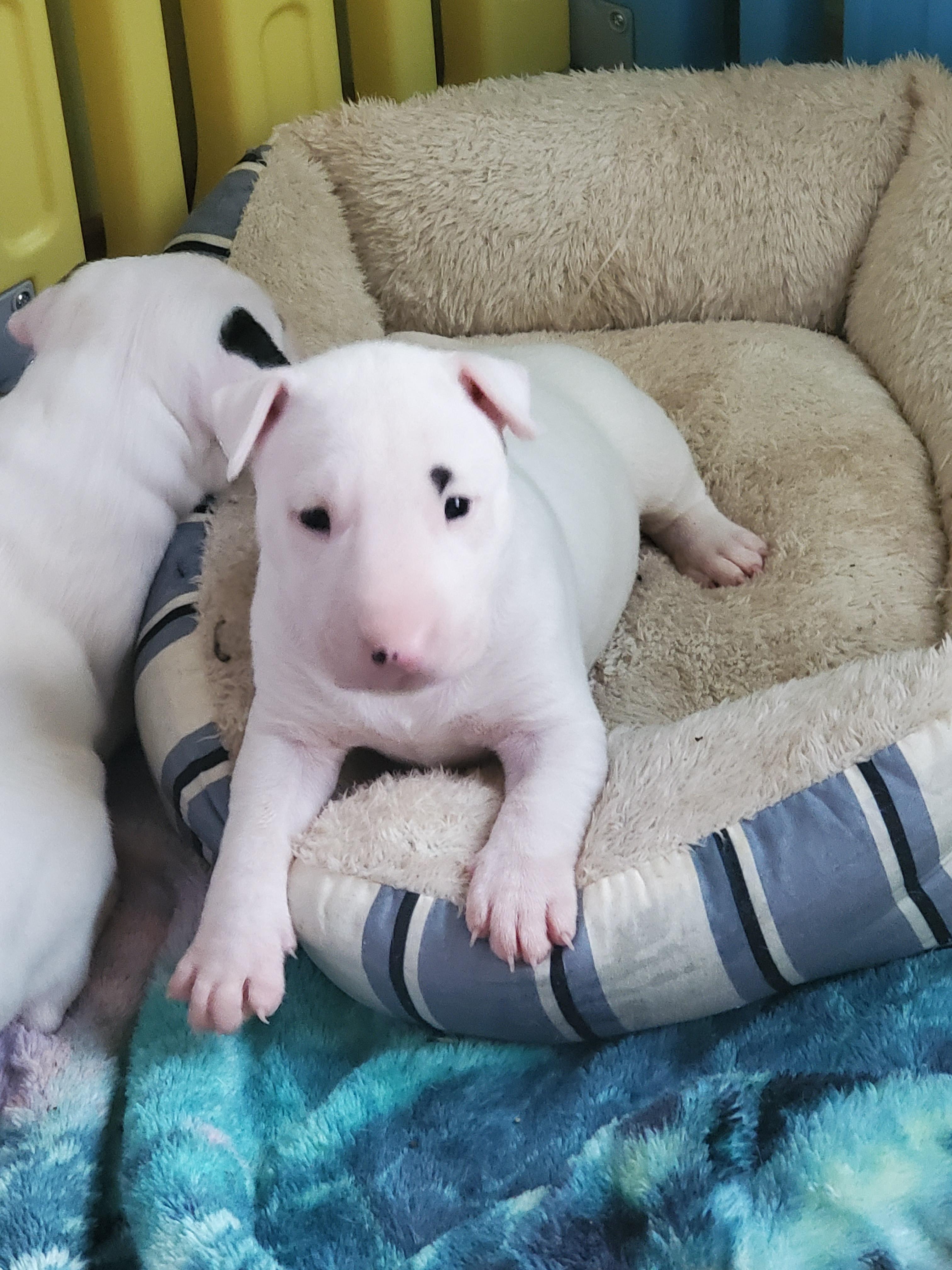 I'm Misty L., the breeder behind Scrumdiddlyumptious Bull Terriers located in Millington, MI. Our goal is to produce adorable, affectionate Bull Terrier pups that are healthy, well-tempered, and make wonderful companions. We are dedicated to always providing our buyers and our puppies with a positive experience, which includes remaining committed to responsible practices when it comes to breeding, training, and rehoming our puppies.