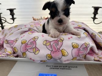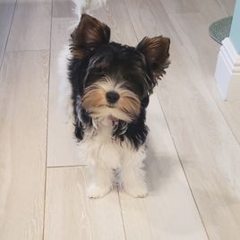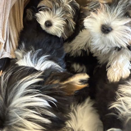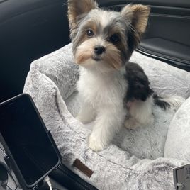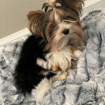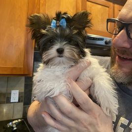 Our experience has been absolutely wonderful. We brought Nacho into the family on Christmas Eve (2023). You do become part of the breeder’s family and she’s been very responsive to questions from Nacho’s new parents. We were also very impressed with the very thorough organization of documentation, care package and Q&A session that came with our little guy. Our Biewer Terrier is happy, healthy and has yet to meet an animal or person he didn’t want to snuggle. We couldn’t be happier.