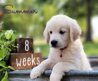 I'm Sarah C., the breeder behind SDG Goldens located in Carthage, MO. We raise 100% English Goldens. All of the extra training, stimulation, and socialization that we do during the first several weeks makes a noticeably different dog. Our puppies are more confident, more adaptable, and easier to train than puppies that don't go through our training program.