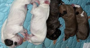 Our puppies include fawn, brindle, and white. Colors will vary depending on the parent dogs.