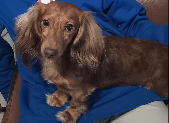 Piper is roughly 8.5 pounds long haired, chocolate based, red dapple. She is very loving to her family and likes to groom us. She is happy as a lap dog and the definition of a Velcro dog. She is a great dog mom to her human kids, and if they even talk to another pet, she's at their feet or on their lap to be the center of attention.