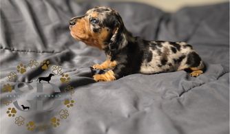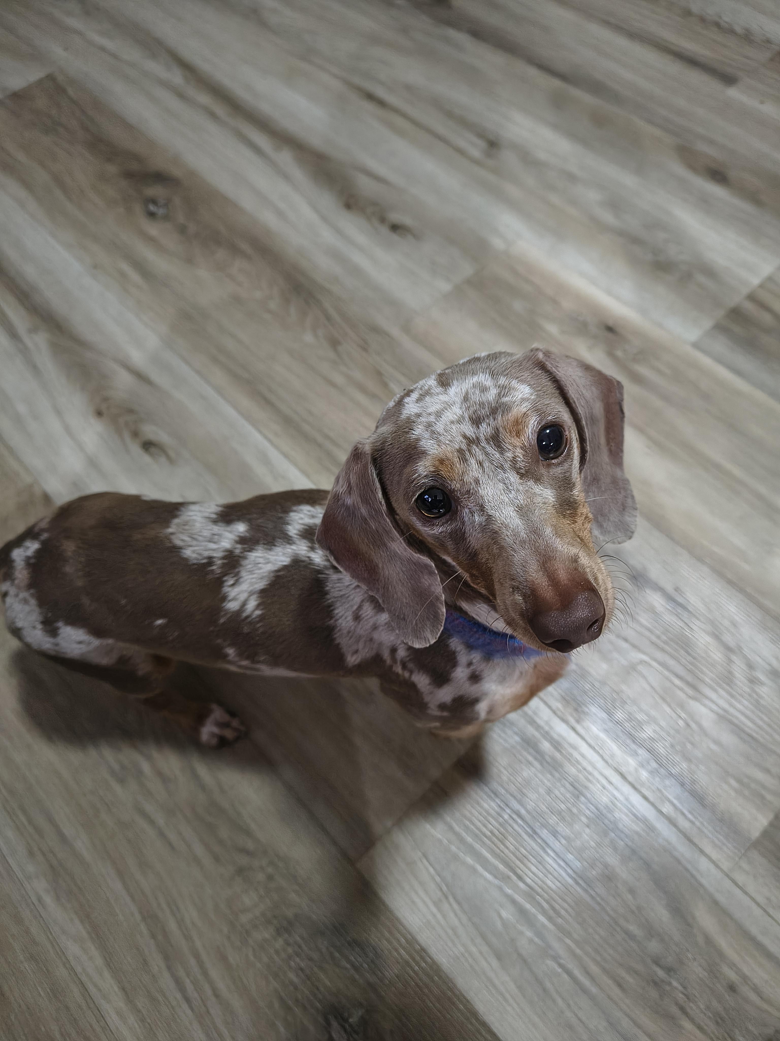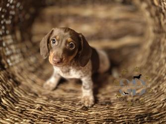 Zoey is an Isabella and tan dapple cutie. She has a lot of energy and loves to give kisses, and curl up under a blanket. She's happy so long as she's close to me. She is a true dachshund. Barks, burrows, and has an impeccable nose. She can hear you open a snack bag from a mile away.
