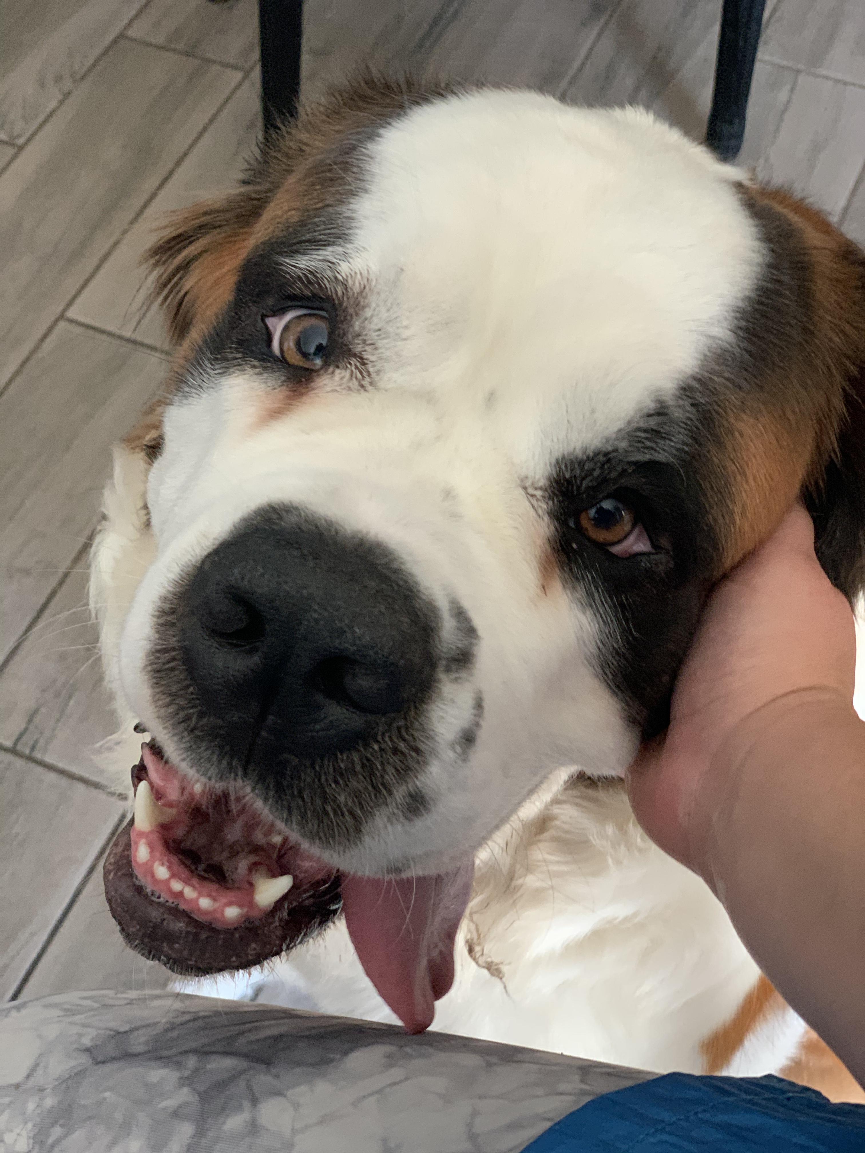 Max is a female Saint Bernard. Carefully selected as a great representative of her breed, Veronica decided to make her part of their program. Veronica has passed Good Dog’s screening process, which involved a review of their breeding practices, environment, and the mental and physical health of their dogs.