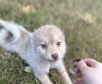 when I decided to get my fiancée a puppy I knew it was going to be a Pomsky, We bought Ace the second we saw him, and we love him to the ends of the earth! He makes my fiancée so happy and he loved his new siblings! Ace is the perfect match to our little family! Kat was the perfect breeder we could ask for, she made sure that I was able to get ace as soon as humanely possible and she was so flexible and understanding! She gets updated monthly about how he is doing! I would recommend kat to anyone who is wanting a pomsky!