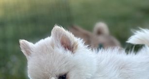I bought my second pomsky from Kat. It was right before Christmas when I got Havoc. I had spent a month expecting another pup that I had already paid half way off, to be ghosted the day I was to pick him up. Kat was breath of fresh air after trying to work with that person. She already had Havoc mostly potty trained. She has been a wealth of information when I have questions. My pomsky pup is beautiful and healthy. She made sure I had a supply of the food he was use to and that I understand her methods for training so that I could gradually move him to my methods of training. She is available to this day should I have any questions. She also gave me an accurate description of his personality. I knew when I got him that he had a lot of husky tendencies. That's what I was looking for this go round, so he is a great fit here!