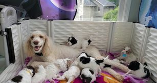 My breeding program is special because our dogs are actually family pets who are well adjusted, deeply loved and cared for. They are a part of our family. Our litters are raised in our home and are a part of our family until we place them in their perfect "Furever home." We also allow in-person visits or Zoom meetings with buyers to pick their puppy and are willing to do check in meetings as well.