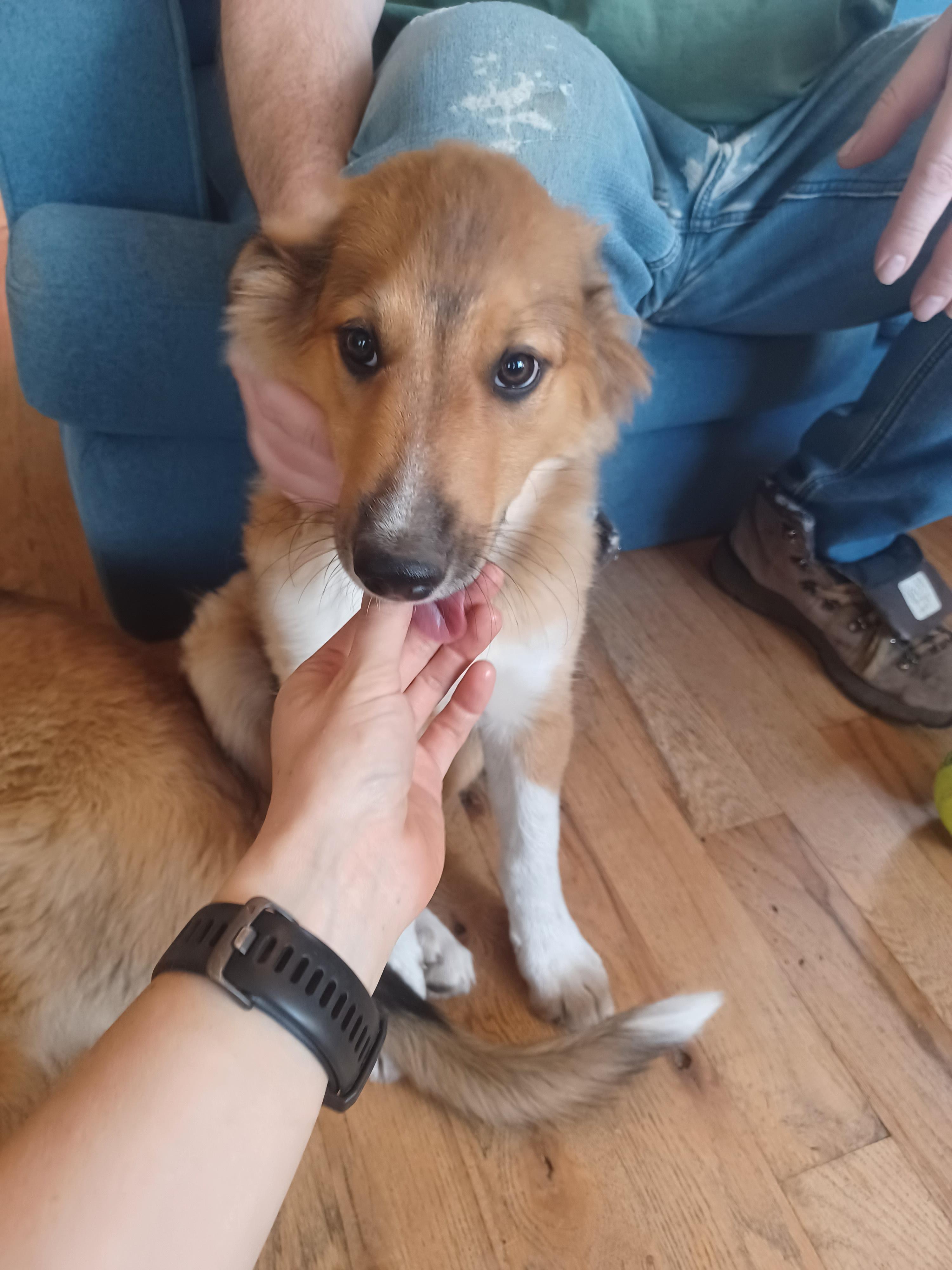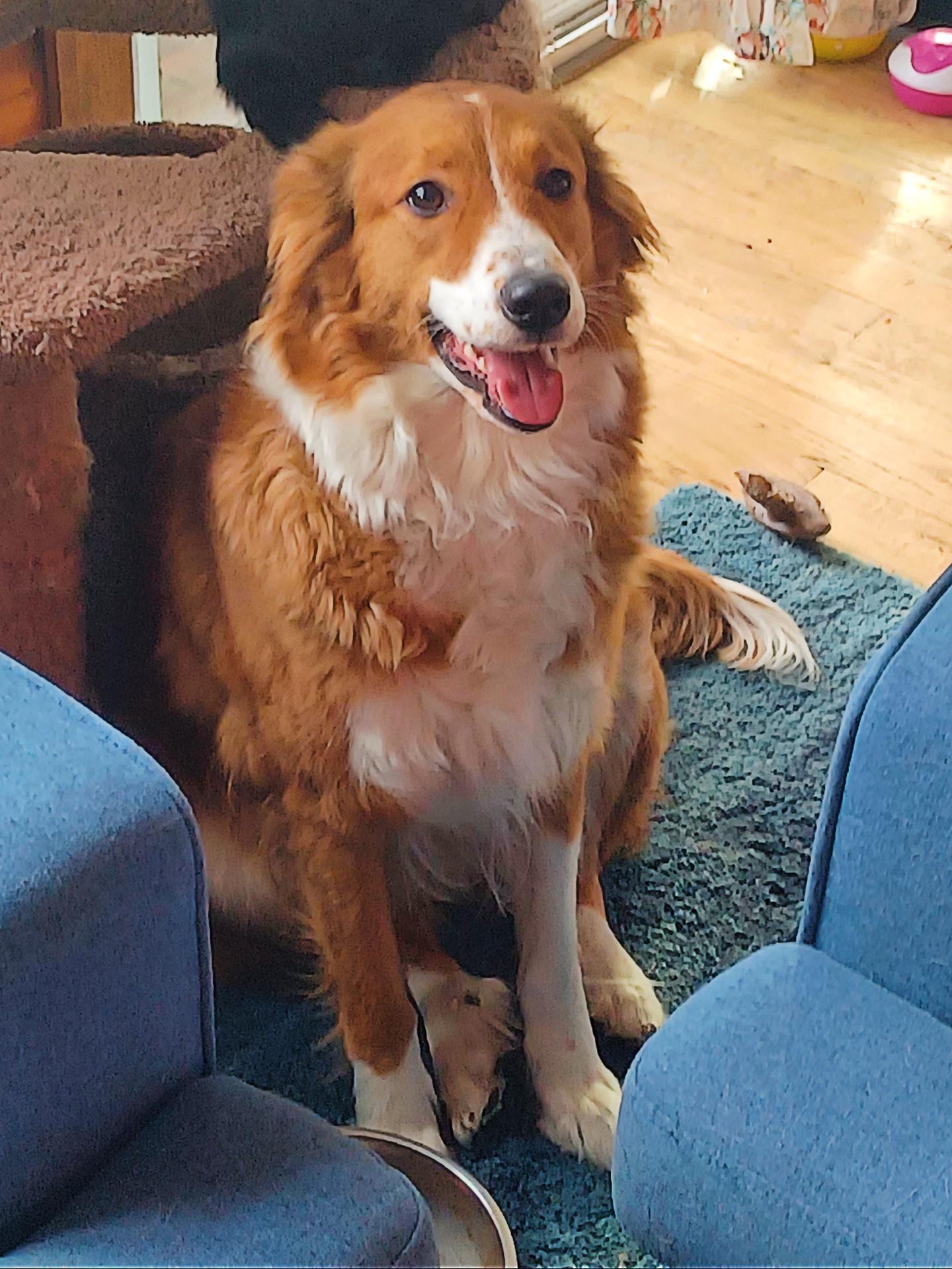 Beau is sweet, gentle, and eager to please. He is also the biggest snuggle bug and clever as the dickens! He loves a good play session and gets along well with other dogs (and all other animals for that matter). Overall, he's the kind that likes to sit back and observe all the goings-on, and when it comes time for him to act, he has already figured out what to do. He learned how to use our other dog's talking buttons just by watching her do it! Though he mostly uses them to ask for bananas and "chicky treats". Weighing in at roughly 55 lbs, he has more of the physical characteristics associated with rough and smooth collies - longer nose, fluffier mane, lankier build - but he is pure traditional Scottish Collie, with all of the beloved quirks and characteristics (and fabulous genes to match). His primary job on our homestead is guarding and wrangling our chickens, though he is also great as an all-around watch dog as he takes a keen interest in keenly observing our entire property. His primary role, however, is as a beloved member of our family - a job which he also seems to take very serious, based on his adorable playfulness and the quality of his snuggles.