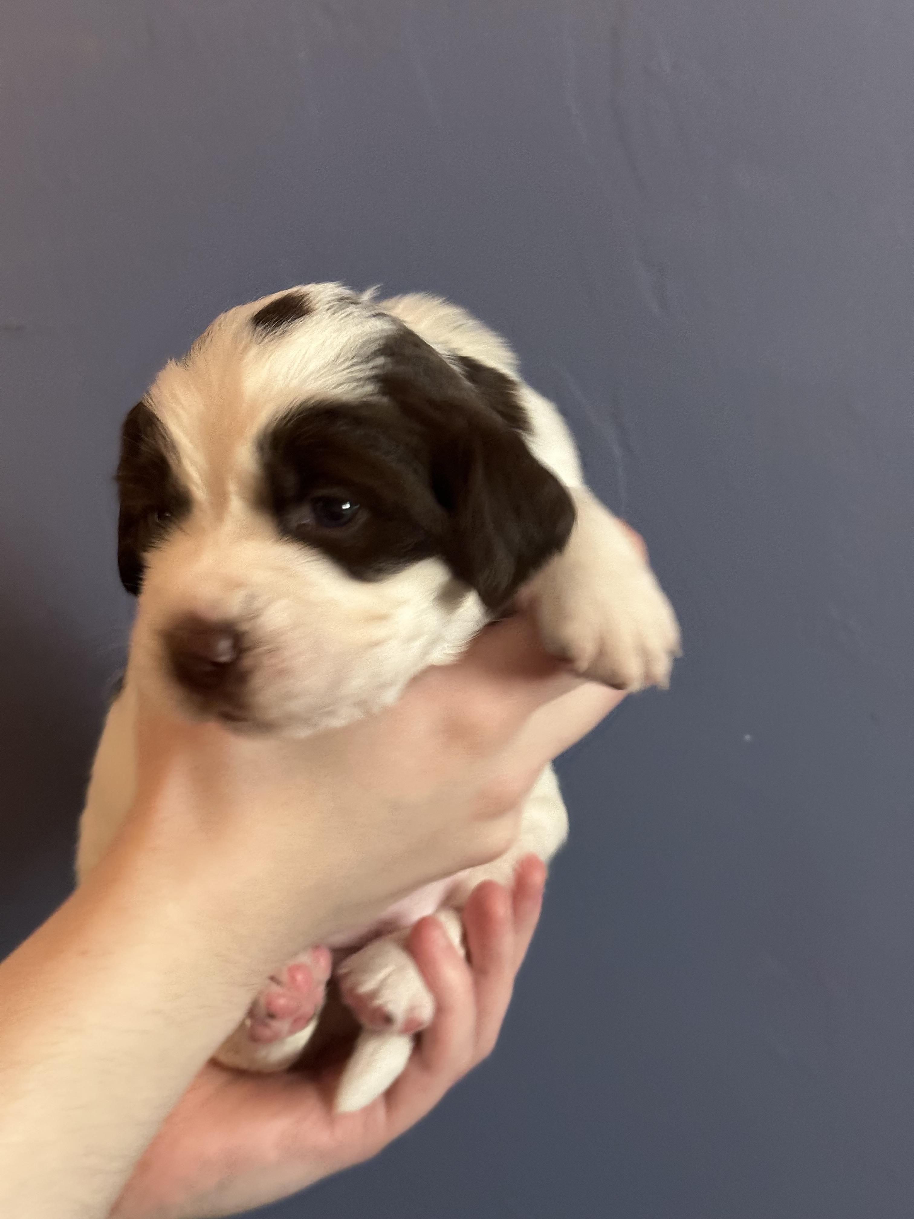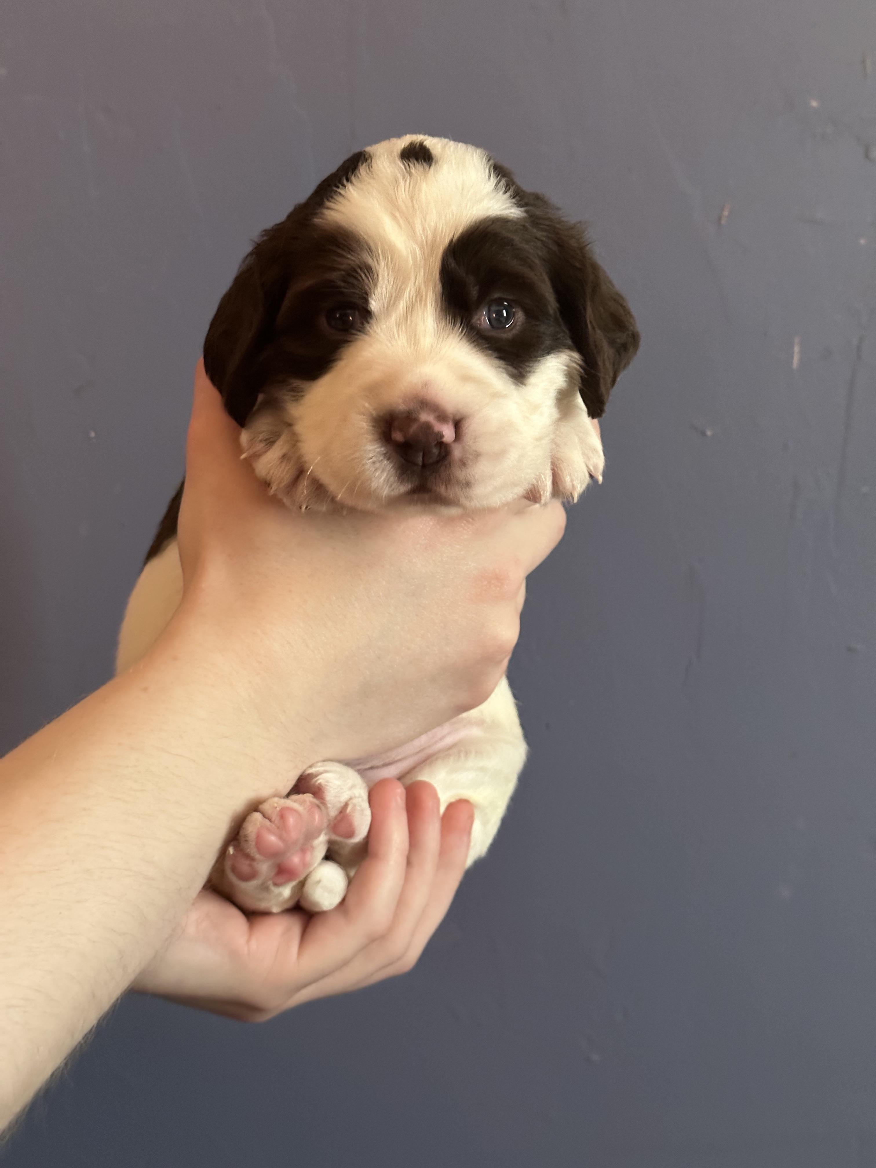 Our puppies are white and liver. Colors will vary depending on the parent dogs.