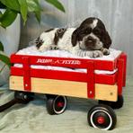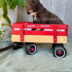 Loki is a stunning chocolate tri with the perfect blend of athleticism and affection. He’s happiest when he’s out adventuring, whether camping under the stars or paddle boarding with his mama, but he’s just as content curled up for a good snuggle. With his gentle, loving temperament and sweet nature, Loki is a favorite companion to his human siblings and everyone he meets. His playful spirit, striking looks, and well balanced disposition make him an exceptional stud and a true example of the Cocker Spaniel’s versatile charm.