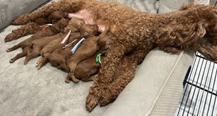 My husband got me my 1st red miniature poodle Foxy for my birthday in July 2021. I lost him to Covid on September 2021. She is so special to me because that was the last gift from him. Foxy was my cuddle buddy and she always by my side after his death. Romeo and Juliet came after they’re also red miniature poodles. They have all brought me so much joy and something to always look forward to in my day. I decided to breed my male Romeo and female Foxy, so the puppies can bring joy to others as well.