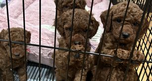 “Red Miniature Poodles! They are AKC pre-registered and microchipped. Their tails are docked and dewclaws removed. Dad is DNA tested with AKC. Puppies have received their 1st set of shots. Puppies are for sale for limited registration(pet only). All puppies are the same price, regardless of size.”