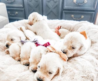 Our Cavalier King Charles Spaniel puppies include blenheim and tri-color. Golden Retriever puppies include golden and light golden. Colors will vary depending on the parent dogs.