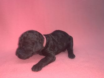 Our Goldendoodle puppies include cream, chocolate, and black. Colors will vary depending on the parent dogs.