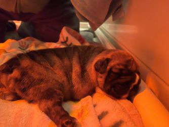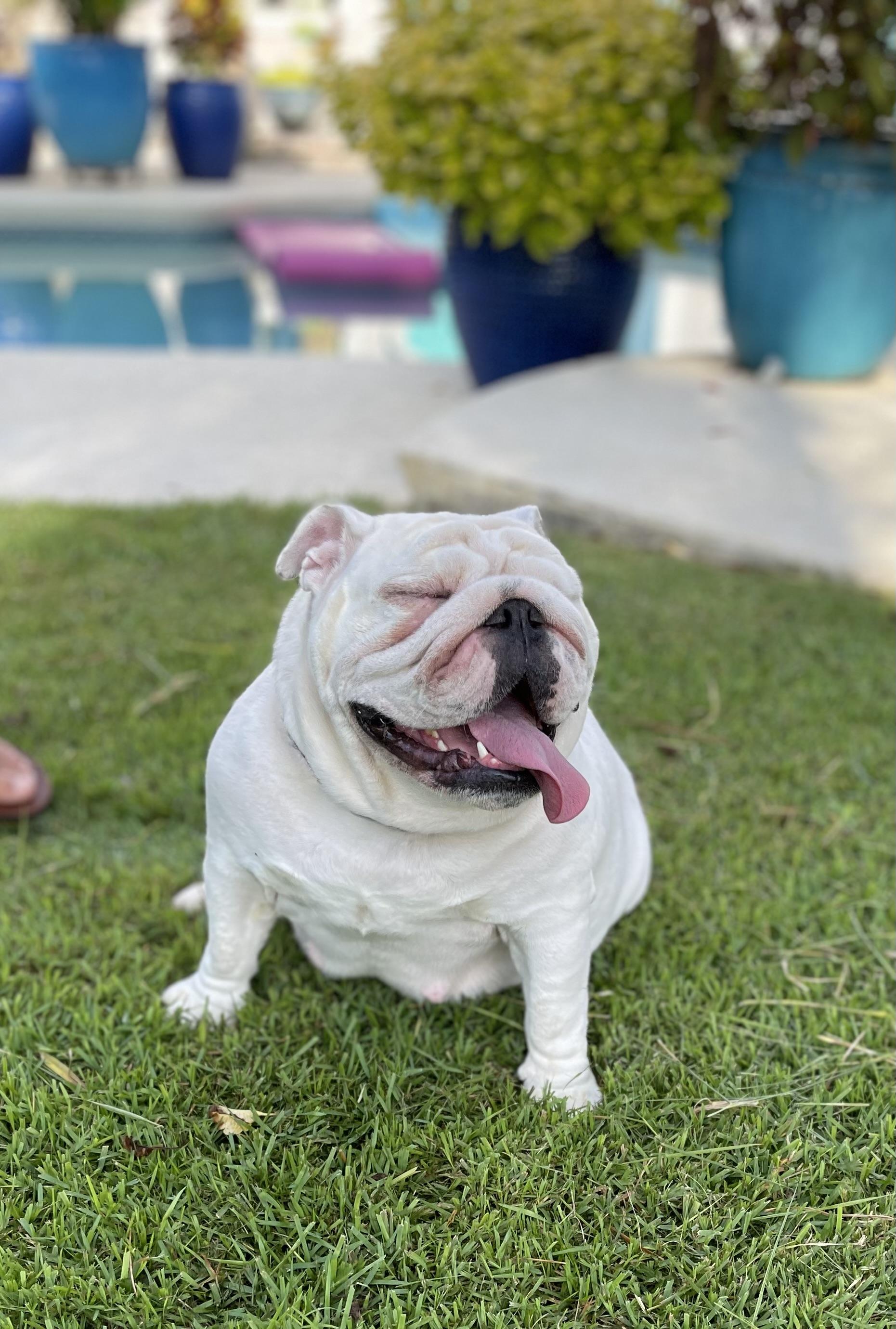 Stella is a female Bulldog. Carefully selected as a great representative of her breed, Katie decided to make her part of their program. Katie has passed Good Dog’s screening process, which involved a review of their breeding practices, environment, and the mental and physical health of their dogs.