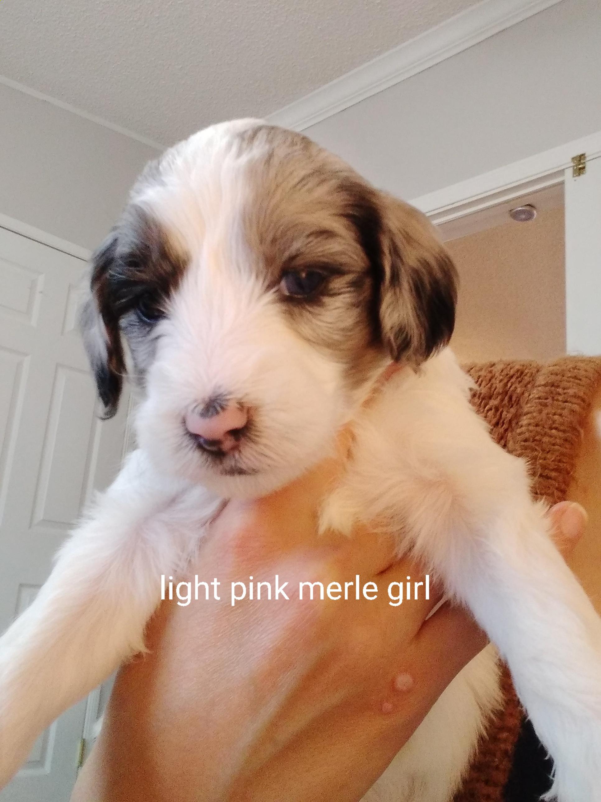 Bam is a female Sheepadoodle. Carefully selected as a great representative of her breed, Stephanie decided to make her part of their program. Stephanie has passed Good Dog’s screening process, which involved a review of their breeding practices, environment, and the mental and physical health of their dogs.