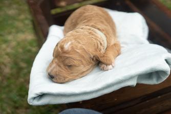 Camper of Senn Doodles is a male Goldendoodle. Carefully selected as a great representative of his breed, Stephanie decided to make him part of their program. Stephanie has passed Good Dog’s screening process, which involved a review of their breeding practices, environment, and the mental and physical health of their dogs.