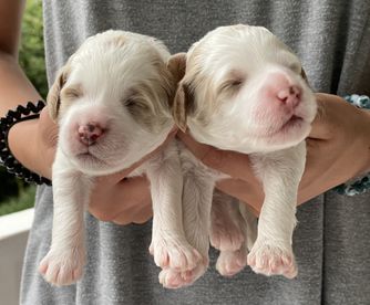 Puppy prices include a $300 refundable deposit and between $1,200 - $2,200 final payment, before taxes & fees.